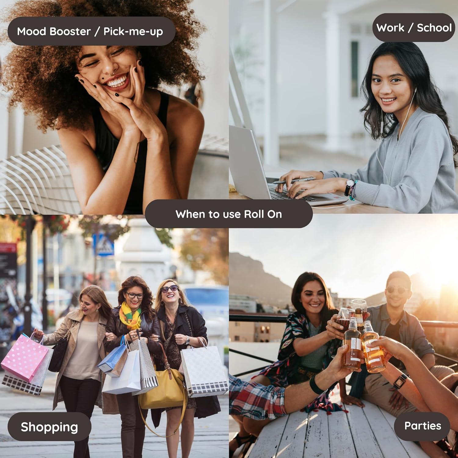 - ON-THE-GO CONVENIENCE - Our roll-ons are thoughtfully crafted with a travel-friendly size, making them perfect companions for your daily adventures. Slip one into your bag or pocket and effortlessly elevate your mood anytime, anywhere. The sleek and compact design ensures mess-free application, while the rollerball glides smoothly over your skin, delivering the perfect amount of scent with each stroke.