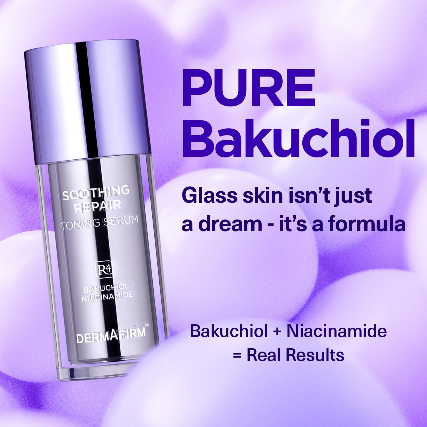 DERMAFIRM Bakuchiol Retinol Serum for Glass Skin with Niacinamide & Peptides | Daily Korean Skin Care for Sensitive Skin | Soothing Repair Toning Serum R4 for Glass Skin