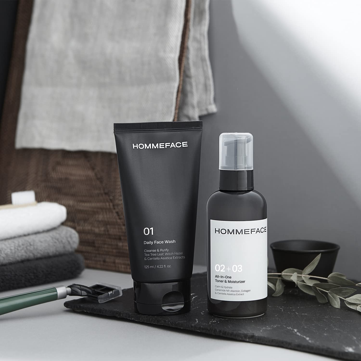 HommeFace 2-Pack Daily Face Wash for Men, Gentle Facial Cleanser for Deep Cleansing with Collagen, Hyaluronic Acid & Witch Hazel Extract