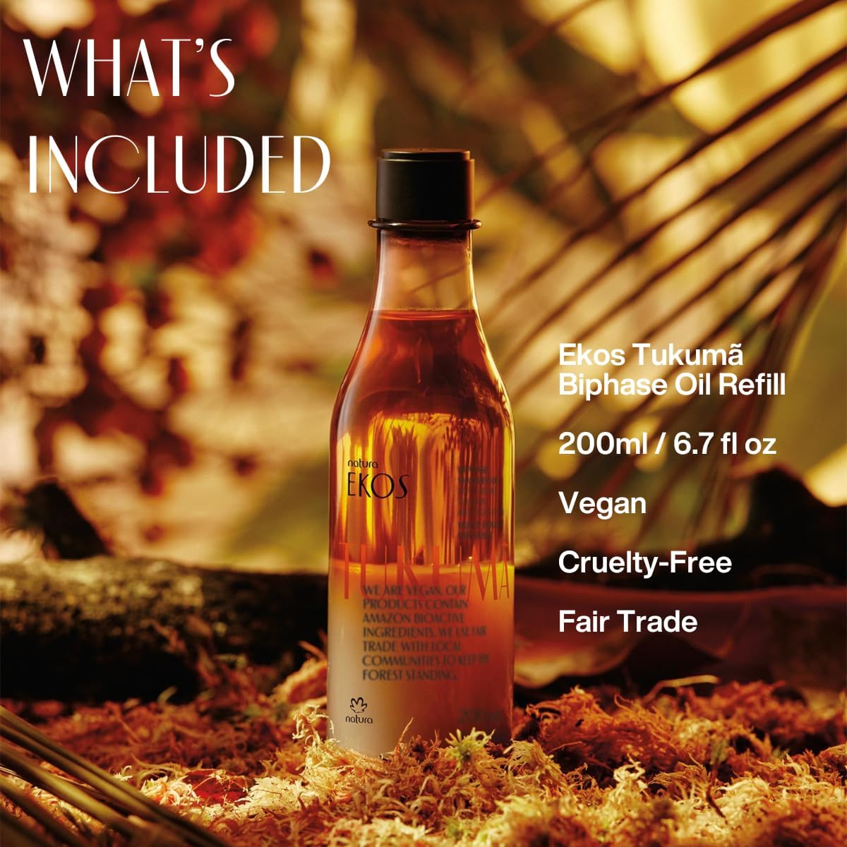 natura - Ekos Tukumã Biphase Shower Oil Refill - Replenishing In-Shower or Bath Body Oil - Anti-Signs of Aging - Skin Moisturizer - Vegan Skin Care - Brazilian Beauty Secrets - 6.7 fl oz (200ml)