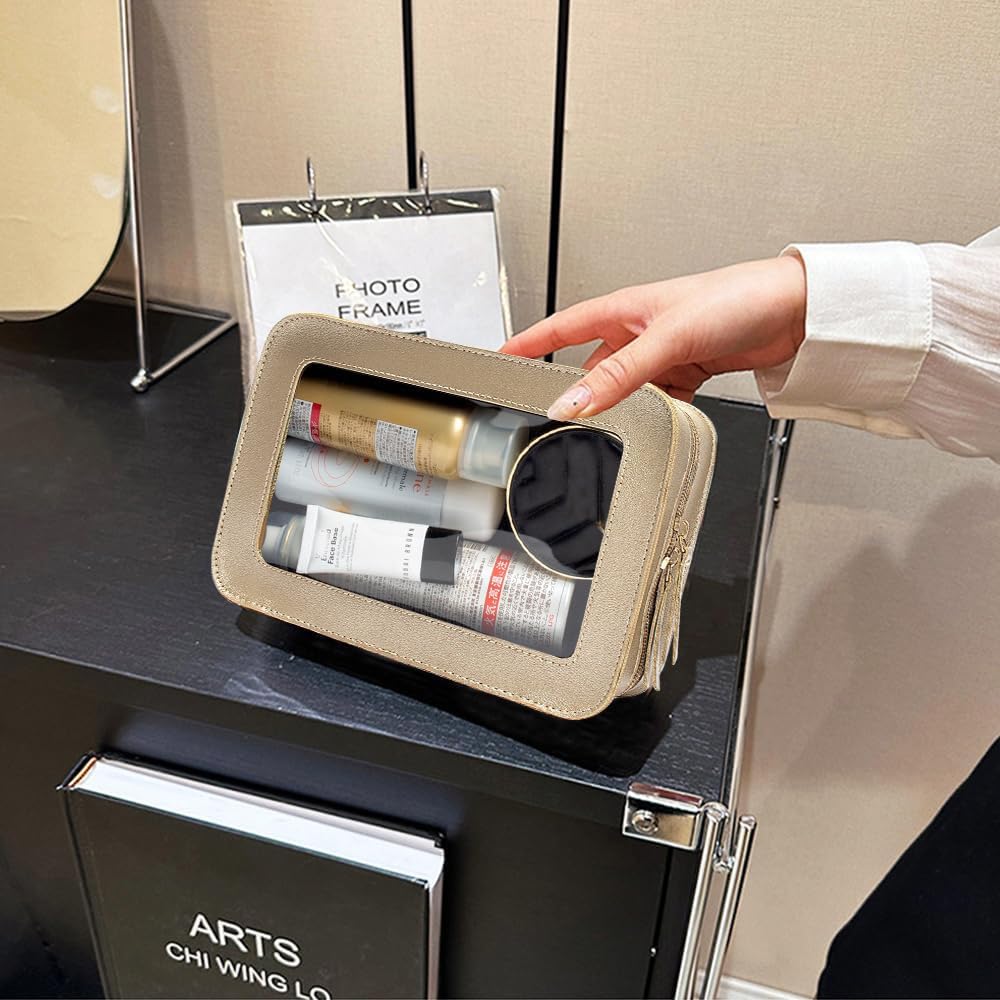 - Clear Design: Our clear toiletry bag is sleek and minimalistic look for your makeup accessories collection. And is designed with a clear PVC window,all items are clear at a glance, and you can quickly choose the cosmetics you need. Size:9.44“*6.1”*2.75“