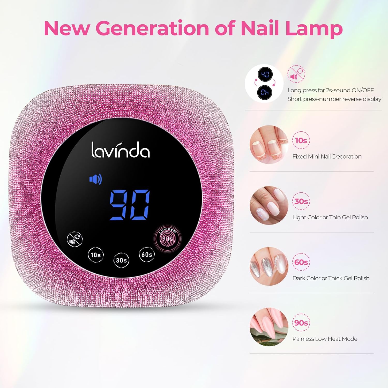 - 【Dual Light Source with Precise Curing】: Lavinda Plug in UV led nail lamp comes with 30pcs dual-light source lamp beads (365nm+405nm wavelengths) The 365nm wavelength is ideal for curing base coats and darker gel polishes, while the 405nm wavelength is perfect for topcoats and lighter gel colors. This precise dual-wavelength design ensures rapid and effective curing, providing you with professional salon-quality results.