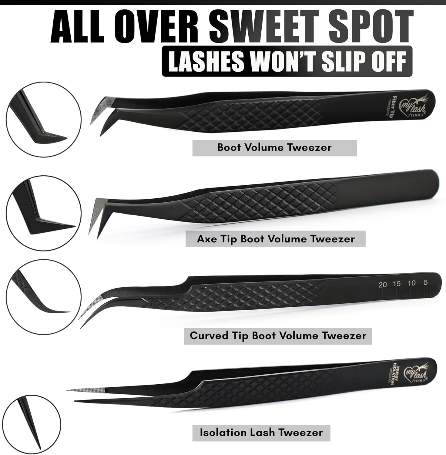 - Style : Fiber Grip Tweezers for Lash Extensions