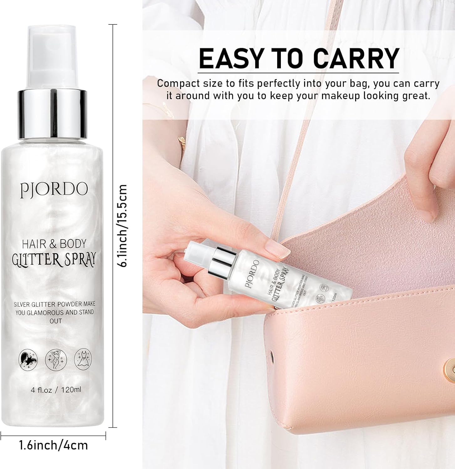 - Shine Like A Star: With the finest silver shimmering particles, it instantly enhances your charm, making you look more glamorous and confident and stand out in all occasions. With just a light spray, it shines under different angles of light, making you a shining and eye-catching focal point in the crowd.