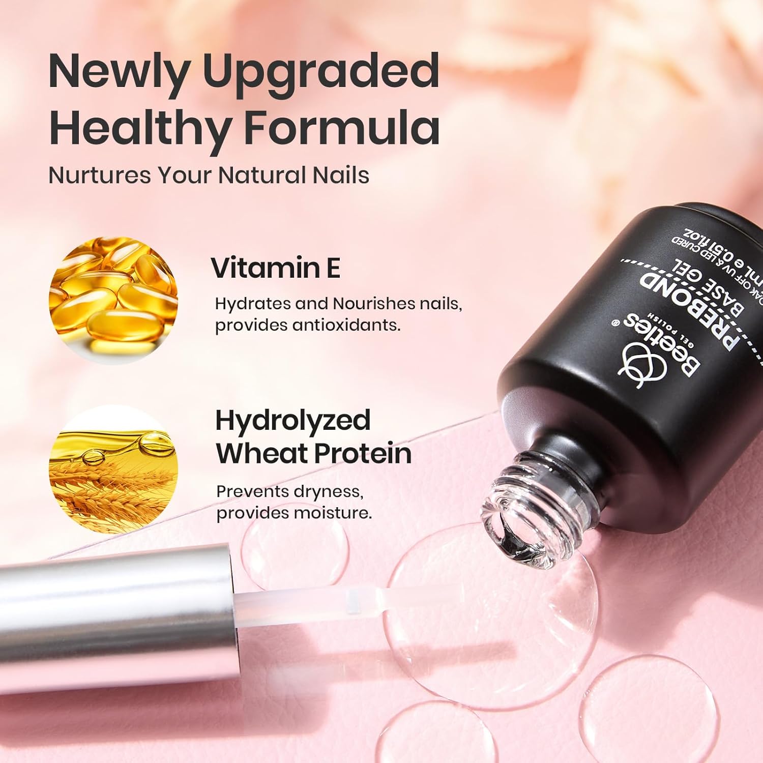 beetles Gel Polish Gel Base Coat, 15ml Prebond Base Gel Nail Polish Long Lasting Soak Off U V Nail Lamp Base Coat Upgraded Formula for Salon DIY Design Manicure Gifts for Women