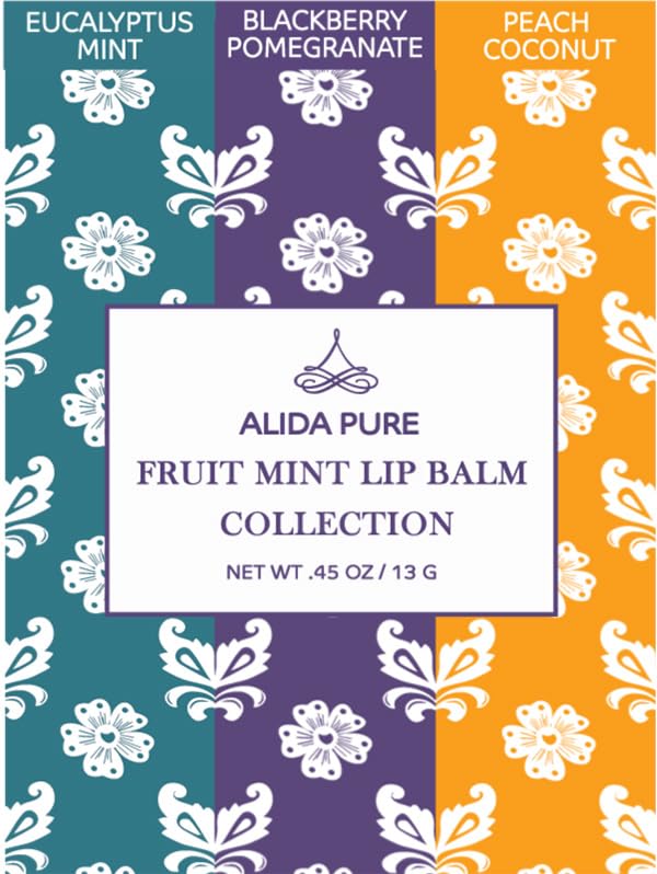 - ALIDA PURE Fruit Mint Lip Balm Collection, is made with cruelty free, hypoallergenic, organic, and natural oils, that protect, and soothe. The delicious, soothing, and moisturizing, Fruit Mint Lip Balm Collection, includes one tube each of Eucalyptus Mint, Blackberry Pomegranate, and Peach Coconut .15-ounce, lip balm tubes. Thoughtfully packaged with biodegradable materials that support the environment.