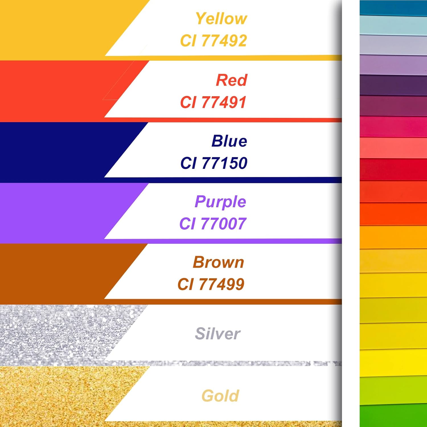 - Set: Each set comes in 8 colors, including red, brown, blue, purple, white, yellow, gold, and sparkling white. 8g of titanium dioxide, 5g of other colors.
