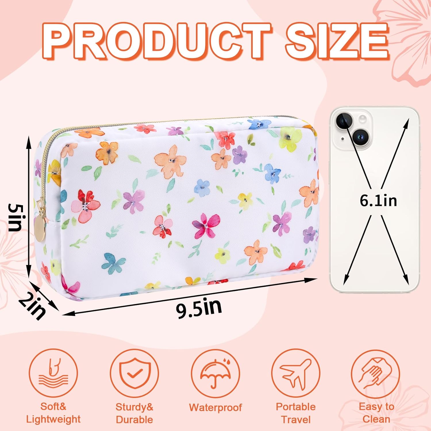 Waterproof Small Floral Makeup Bag Pouch for Purse,Nylon Flower Cosmetic Bag Preppy Travel Toiletry Storage Bag for Women Girl,Cute Makeup Organizer Bag Pouch with Zipper(Small Colorful-Flowers)