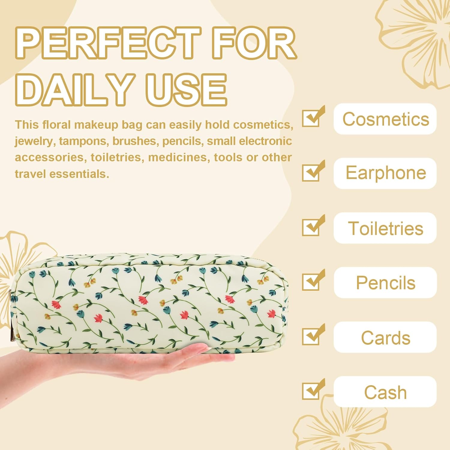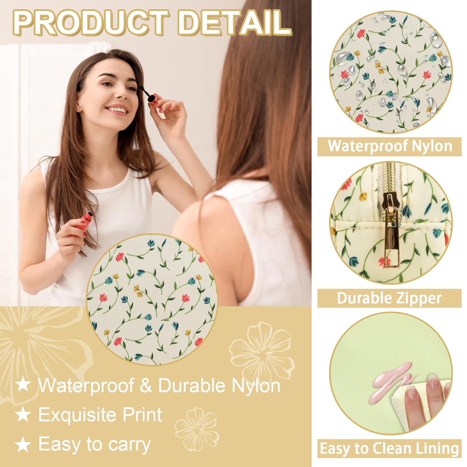 - 【Superior Quality】The floral makeup bag is made of lightweight and durable high quality nylon. It is waterproof and easy to clean, helping to protect your cosmetics and toiletries from water spill accidents. Age grading: 156months+;Age group applied in testing: Over 3 years.