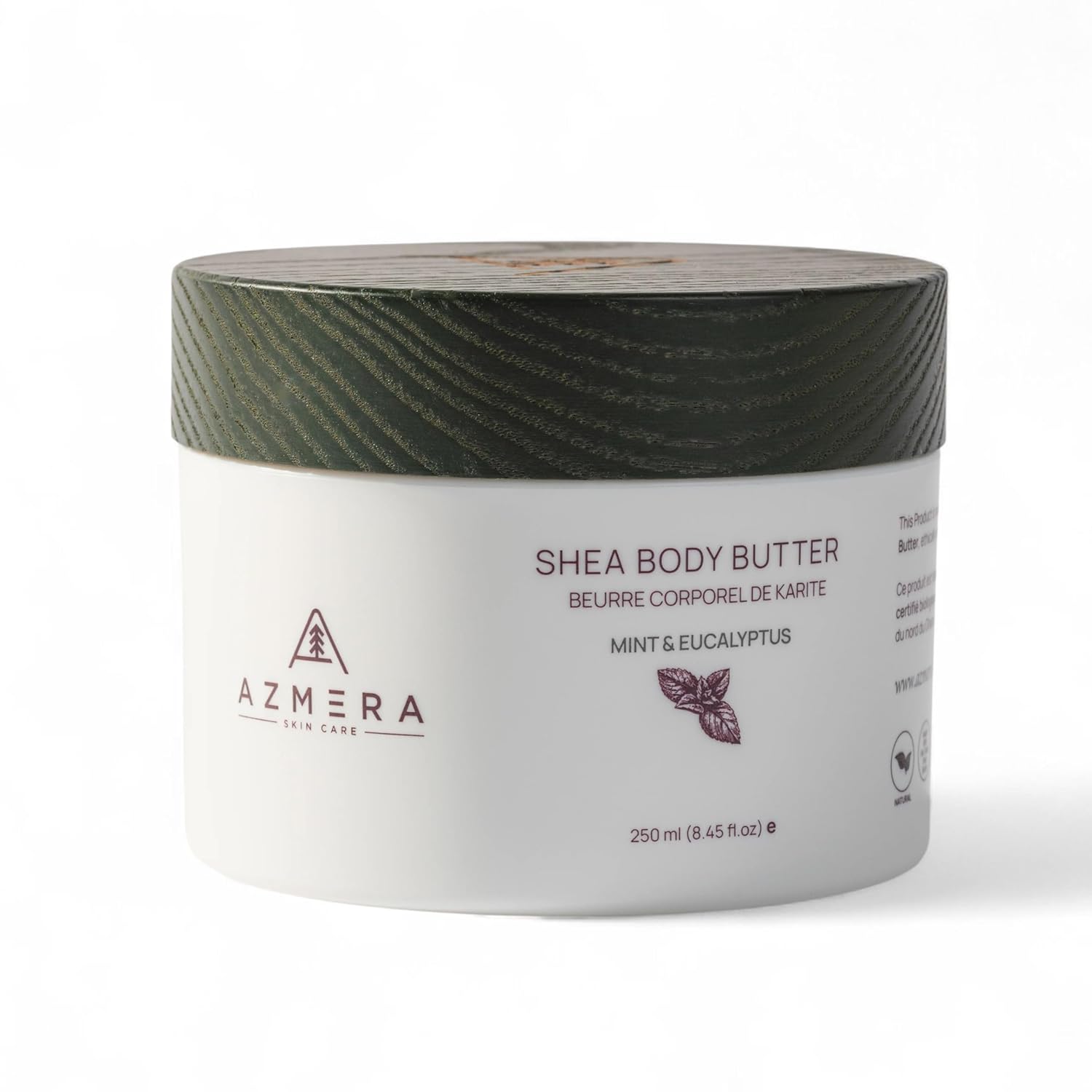 AZMERA Handcrafted Whipped Shea Body Butter – Refreshing Mint & Eucalyptus Scented Moisturizer for Dry, Sensitive Skin, Argan Oil & Vitamin E – Vegan, Non-Greasy Skincare – 8.82 oz