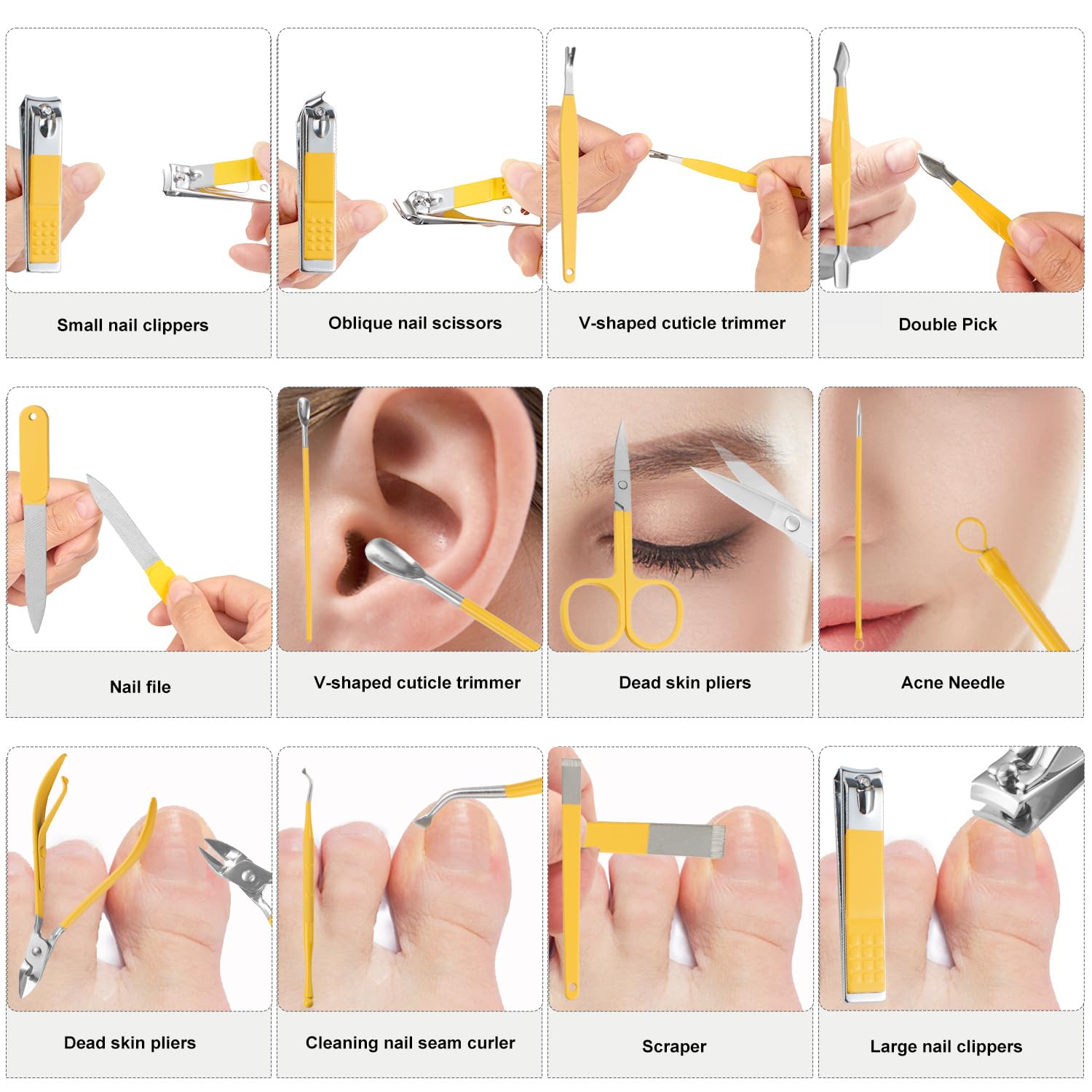 - Manicure Set:manicure and beauty kit contains 12 kinds of care tools for hands and feet,multifunctiona include hand care,facial care,foot care tools,can meet all of you needs, Nail Kit, Manicure Kit, Nail Care Kit For Women.