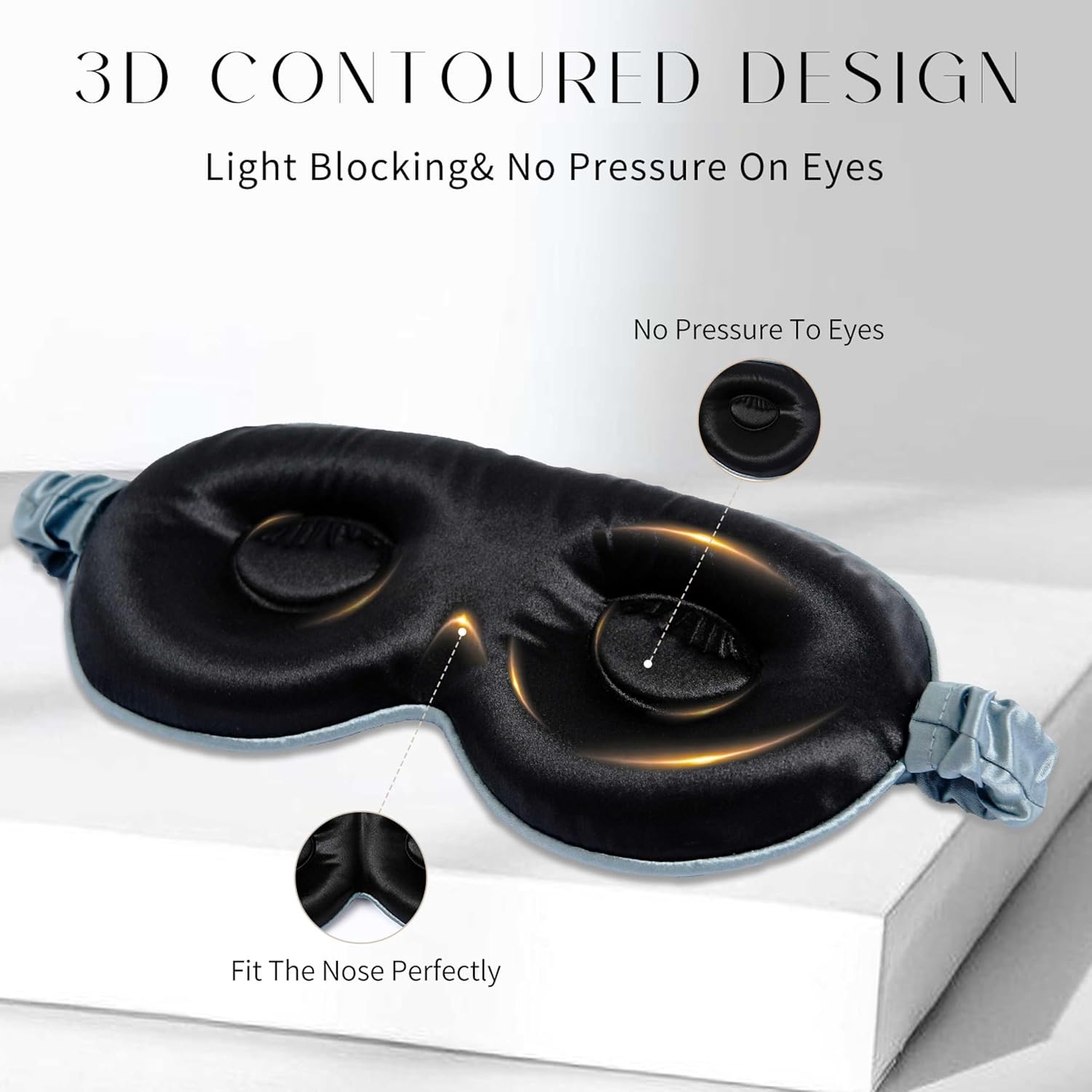 - 【LUXURY 3D SILK SLEEP MASK】Our exquisite 3D silk eye mask is designed for comfort. It is made of 22 momme mulberry silk on both sides, filled with 100% silk instead of satin, providing a luxurious and skin friendly touch. Experience the natural happiness of silkworms and enjoy the most peaceful sleep.