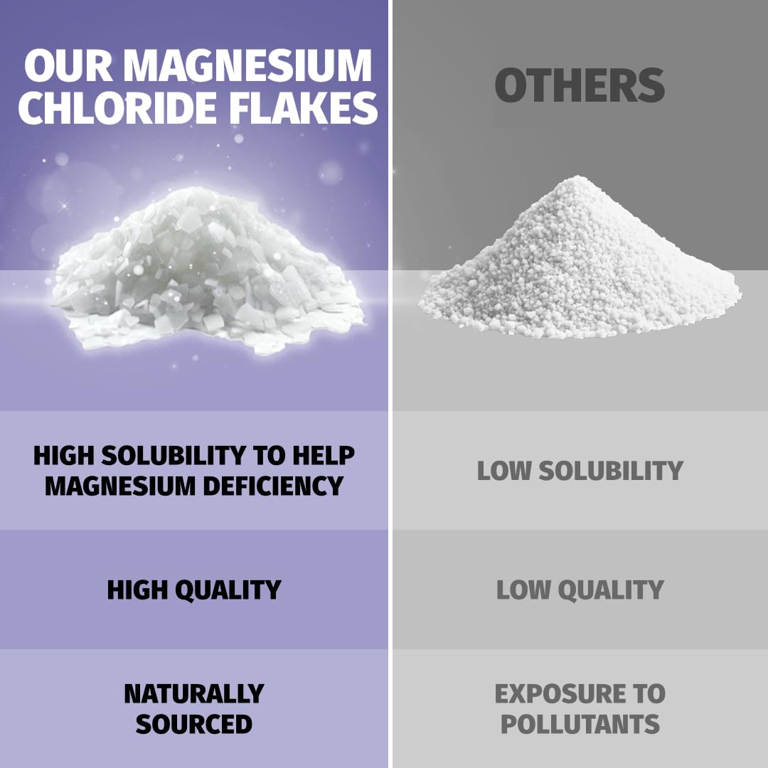 - Elevate your bath routine with Transdermal Magnesium Chloride flakes, surpassing Epsom salts in absorption. Tailored for feet or muscles, our pure bath salt blend aims to promote relaxation after a long day.