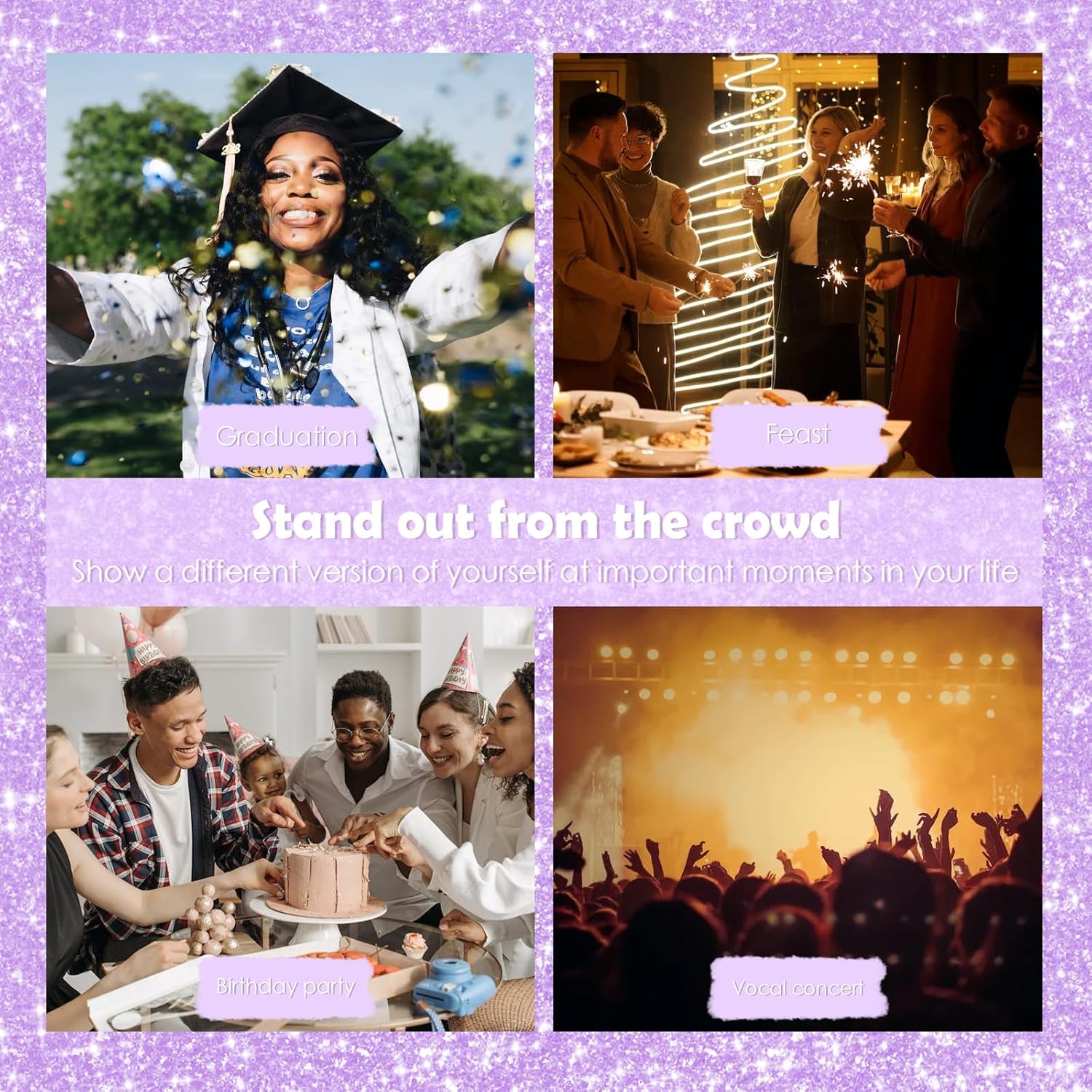 - Large Capacity Glitter Set: This amazing set includes a 20ml bottle of hair glitter spray. Whether you want to add a touch of sparkle to your everyday look or create a show-stopping hairstyle for a special occasion, our body spray glitter set has you covered. Additionally, this glitter hair spray included a 10ml refill of Shimmer Hairspray and 2 sticks of Glitter Gel to ensure your shine never fades.With our voluminous glitter kit, you'll have all the essentials to sparkle make a statement.