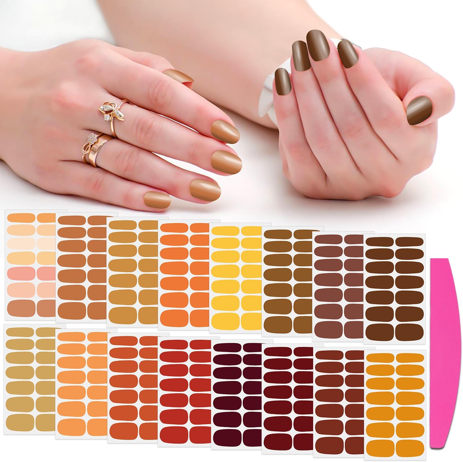 - Package Content - 16 sheets Thanksgiving nail strips for women + 1pc nail file. each sheet of measures approx. 10 x 5.5 cm/ 4 x 2.2 inches, total 224 pieces and 7 different sizes, a variety of styles and color, let you always keep gorgeous nails.