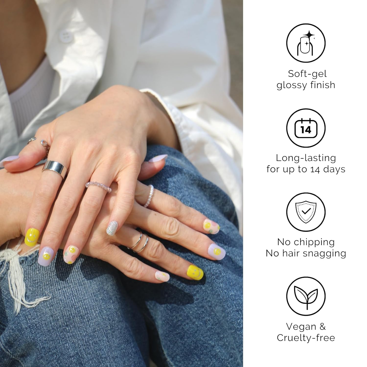 - 【SALON QULITY】 Made of real nail polish 60% precured, soft to fit all nail shapes - Nailog semi-cured strips with waterproof top gel last up to 2 weeks once cured with a UV lamp. - Our gel nails are also extremely lightweight so they do feel like your own nails!
