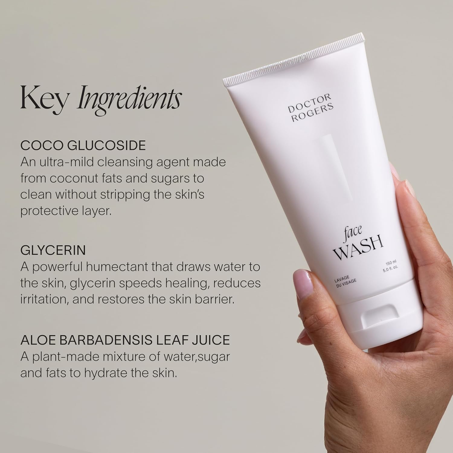 Doctor Rogers Face Wash. Gentle Hydrating Daily Cleanser for Sensitive, Dry & Combination Skin, 5 Ounce (150 ml) Tube