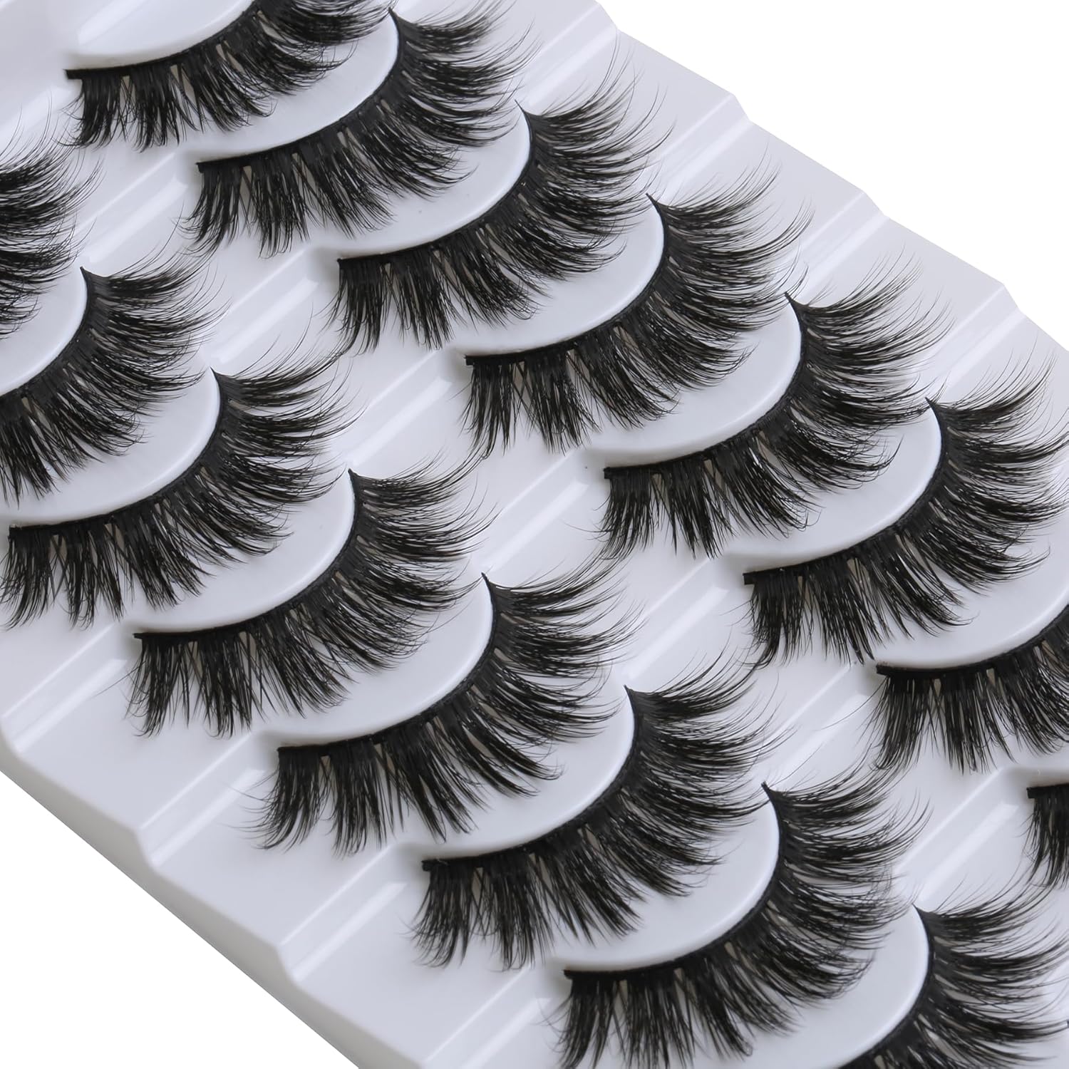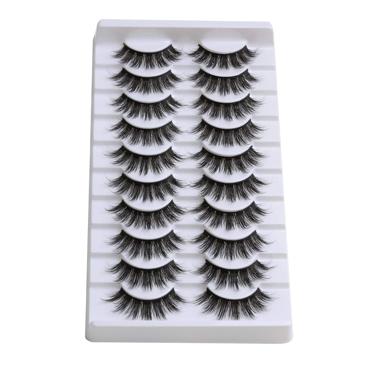 SUNWELL False Eyelashes 18mm Mink Lashes 8D Fluffy Faux Mink Lashes Strip Eye Lashes Soft Reusable Full Volume Fake Eyelashes 10 Pairs Pack