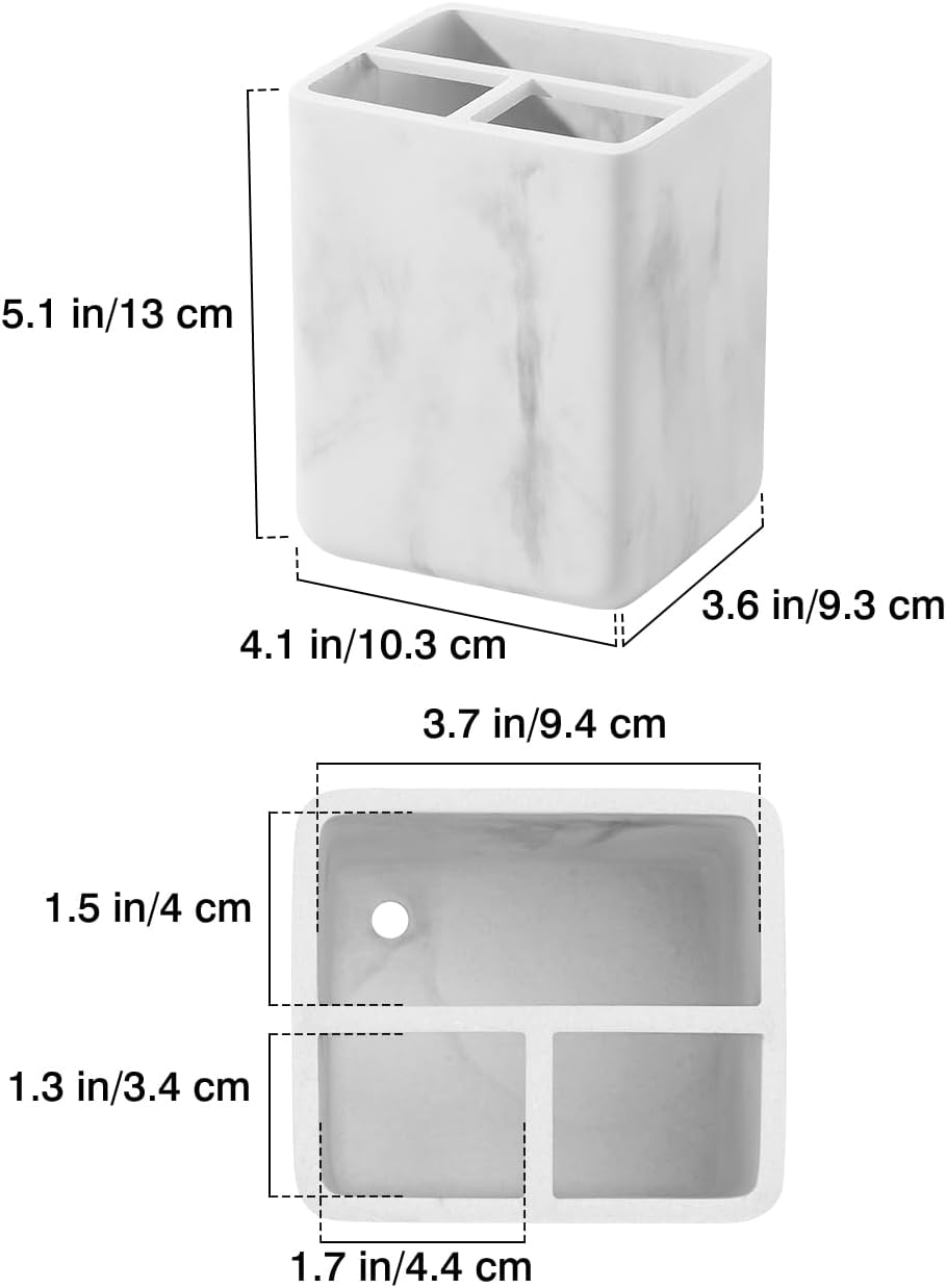 - ใ๐๐๐ฅ๐ข๐๐๐ญ๐ ๐๐จ๐จ๐คใSize: 4.1*3.7*5.1 inch. The shower toothbrush holder marries elegance with functionality, not only tidying up your countertop without taking up much space, but also adding an element of natural elegance to your home. The matte surface shows distinctive taste, matching different decorative styles.