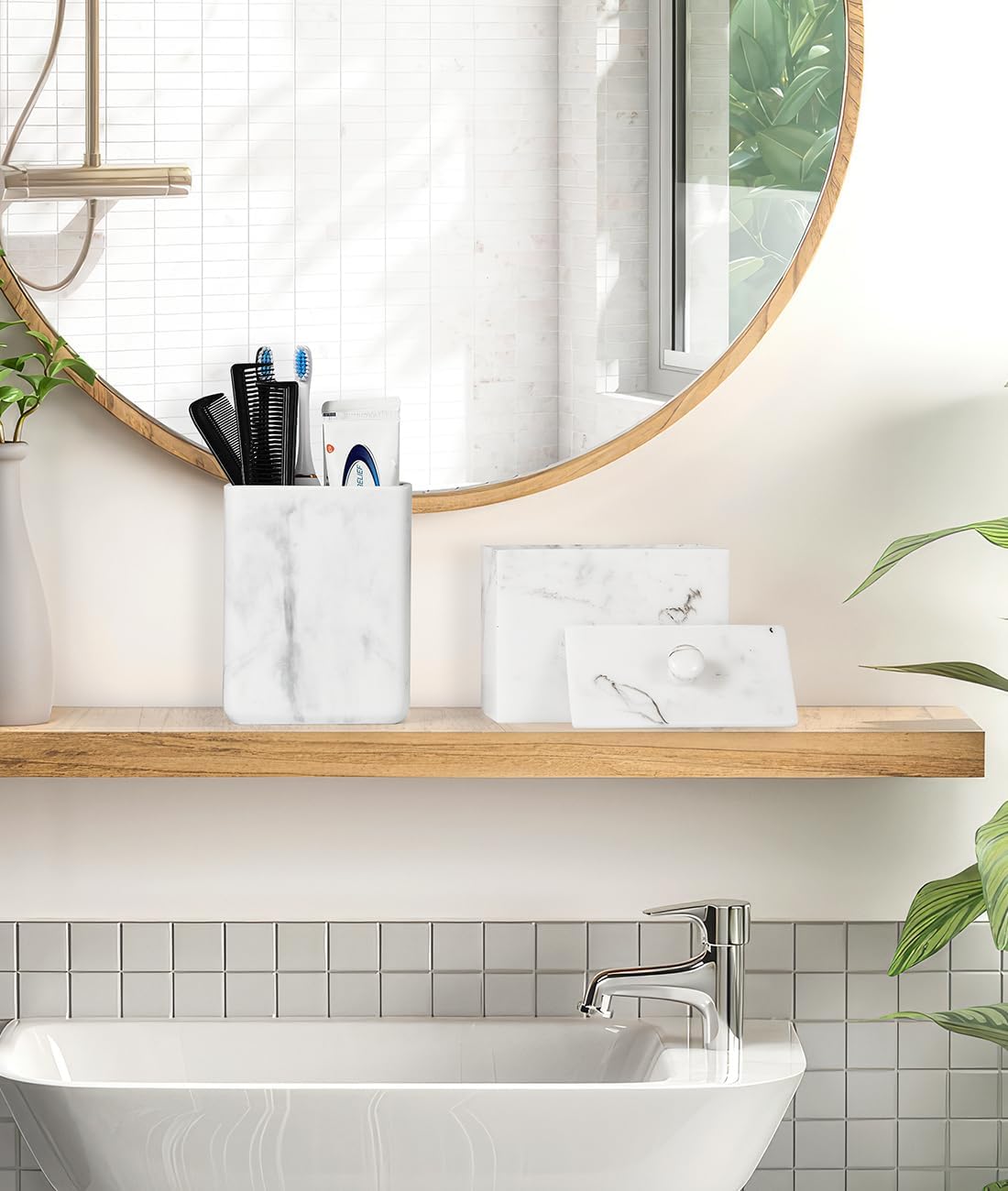 - ใ๐๐ข๐ ๐ก-๐ช๐ฎ๐๐ฅ๐ข๐ญ๐ฒ ๐๐๐ญ๐๐ซ๐ข๐๐ฅใThe toothbrush holder set is made of natural resin, which is waterproof,sturdy.and non-irritating smell, safe to hold oral items. It is durable enough to provide long-lasting functionality in the wet bathrooms. Easily cleaned with a damp cloth or water (0-104โ)