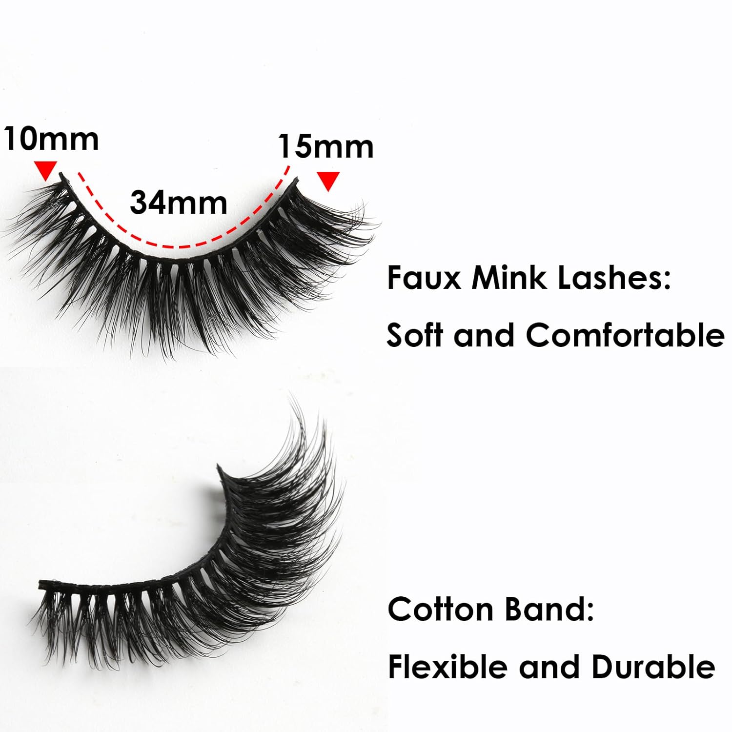 - Comfortable Band - With the thin band, the lashes can be soft & ligheweight, bring you comfortable wearing experience. No burden to makeup. 34mm flexible and durable band can be trimed easily to suit your eye. The lashes can be reused with proper care.