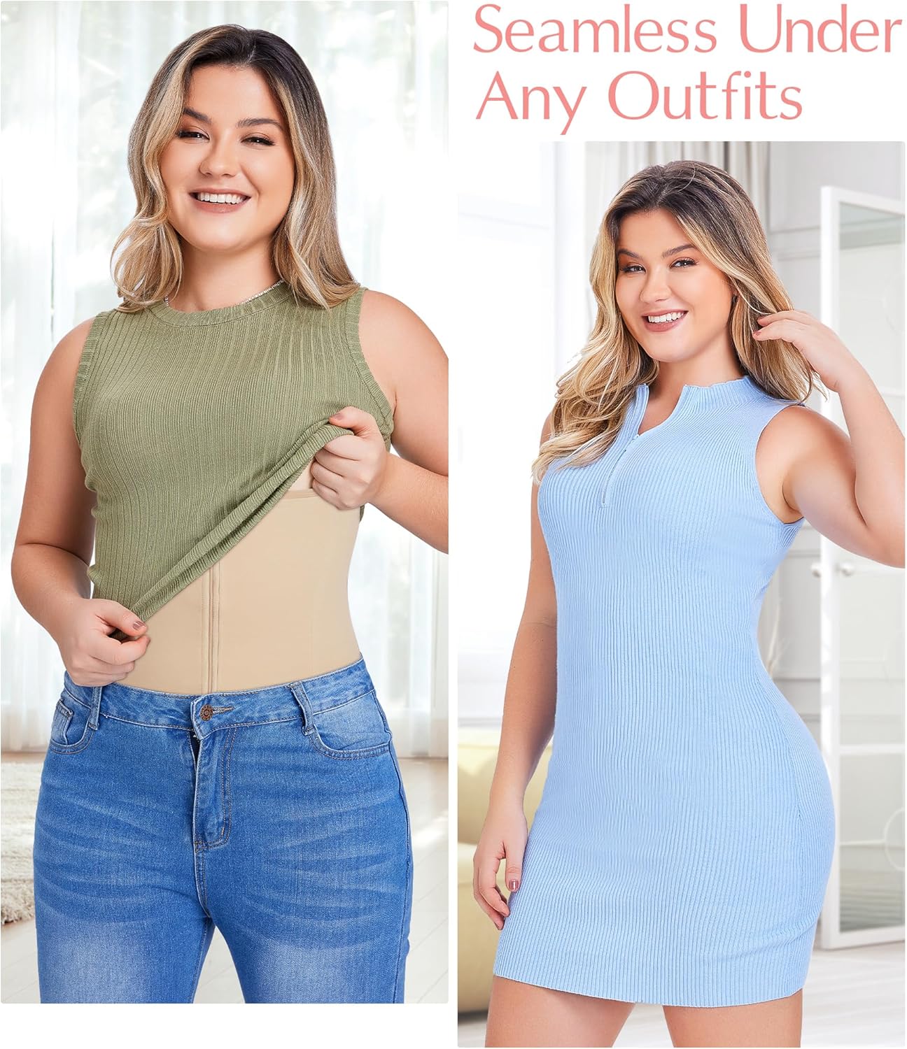 - BODY SLIMMING CORSET WAIST TRAINER: Our tummy control shapewear can hold your belly, reduce waistline, create instant slim curve to achieving the hourglass figure. Inner with adjustable 3 rows of hook and eye closure, the waist trainer for women lower belly fat is widely enough to wrap the whole abdominal area in different stage effectively. Outer plus with durable zipper, double control to flatten and tighten the tummy, giving you immediate slimming effect to enhance your natural curves.