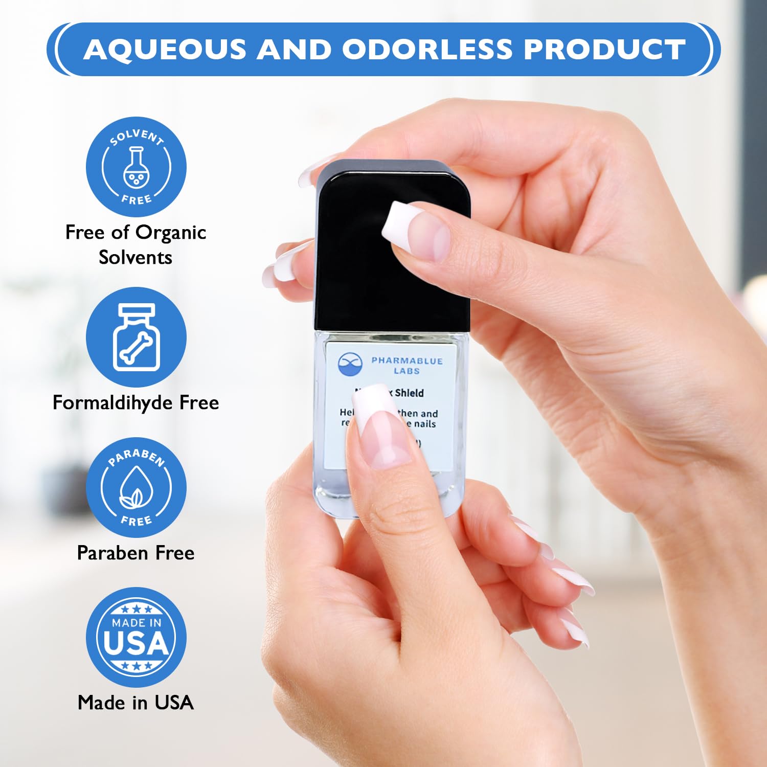 - Easy application and fast drying. Aqueous and odorless product. Free of of formol, parabens and organic solvents. Made in USA.