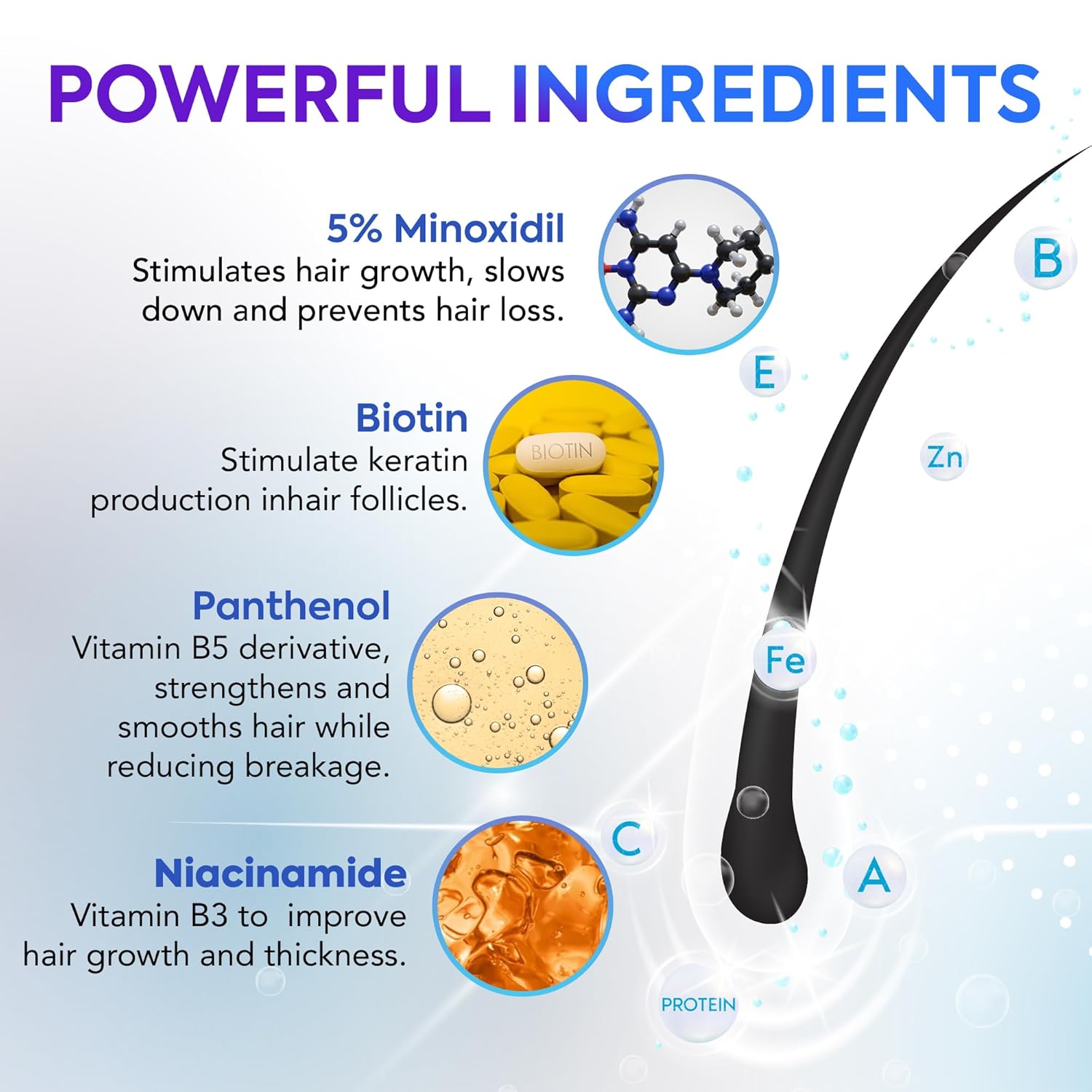 - MINOXIDIL FOR MEN AND WOMEN - Minoxidil spray strengthens thinning and weak hair resulting in noticeably thicker, fuller, and younger-looking hair. Biotin, a B complex vitamin, helps stimulate hair growth, causing hair to thicken and appear healthier while growing more quickly and sustainably.