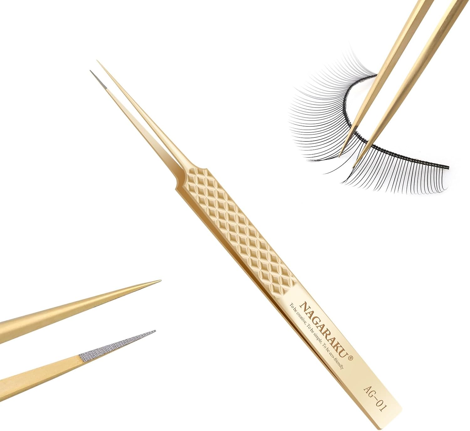 NAGARAKU Precision Fiber Tip Tweezer for Eyelash Extensions Diamond Handle 5cm Slim Tweezers Tip Anti-Static Anti-Slip Stainless Steel Pointed Separate Eyelashes Straight Tweezers with Box(AG-01)