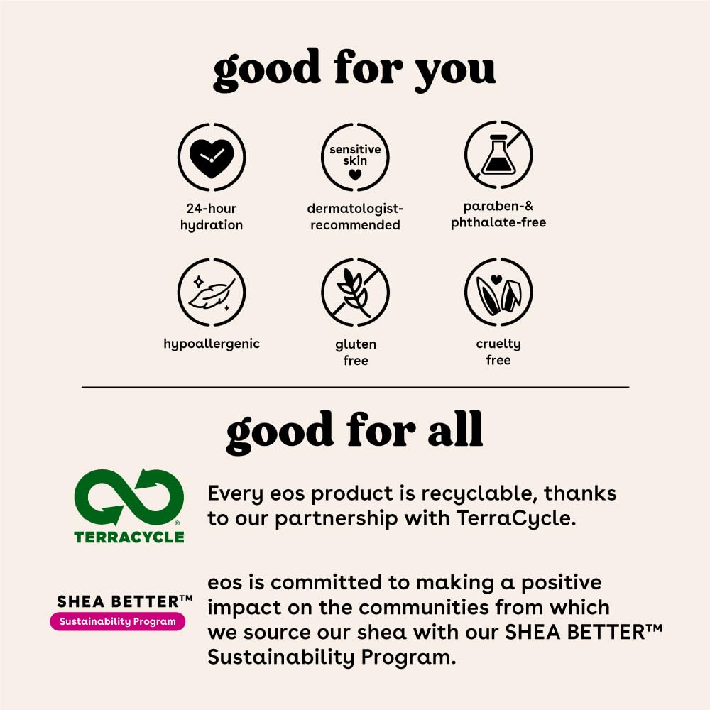- SUSTAINABLY-SOURCED SKINCARE INGREDIENTS: eos lip balms have wild grown, sustainably sourced natural shea butter and oil to leave your lips smooth and nourished, making it a suitable overnight lip mask