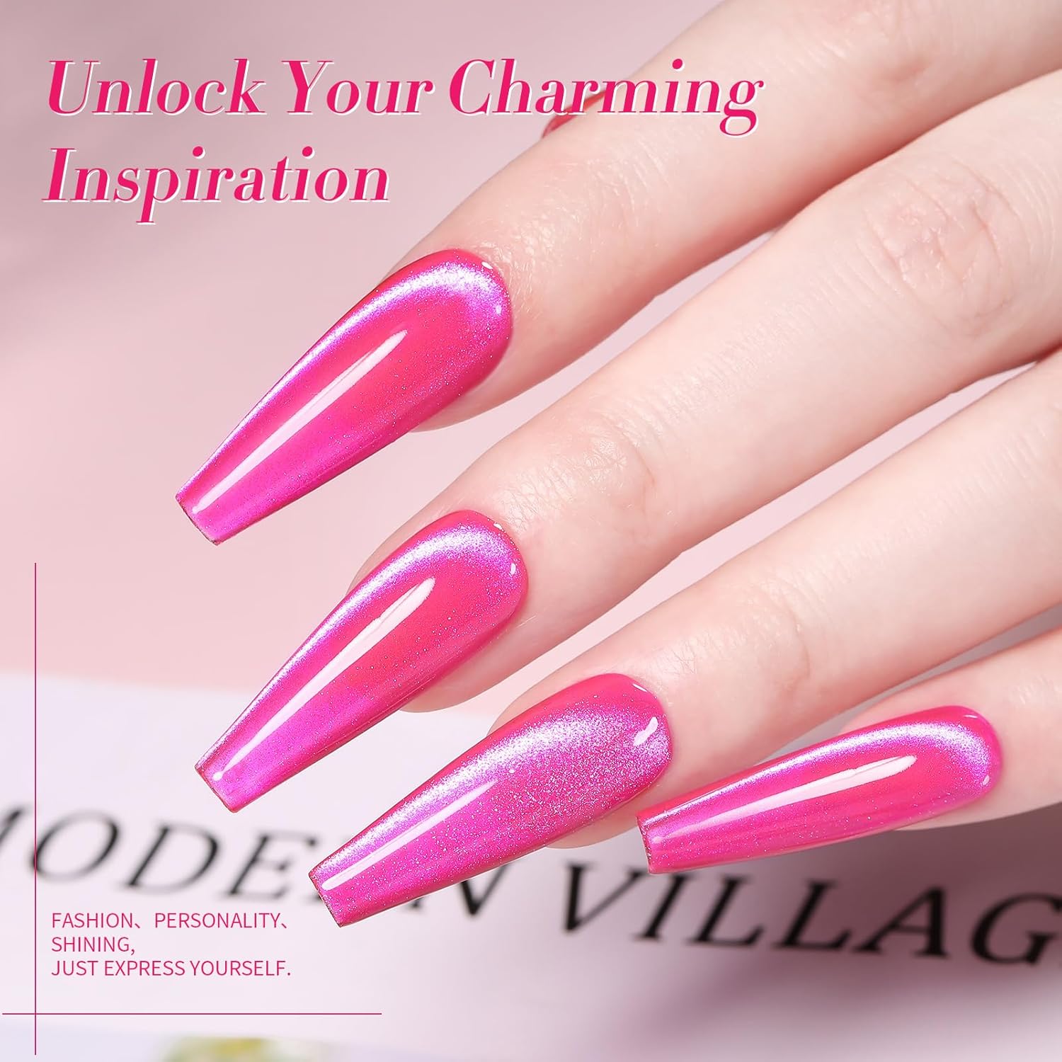 Born Pretty Magnetic Gel Nail Polish Hot Pink Cat Magnetic Eye Gel Polish Holographic Cats Shiny Glitter Nail Gel for Salon Home DIY Manicure Use