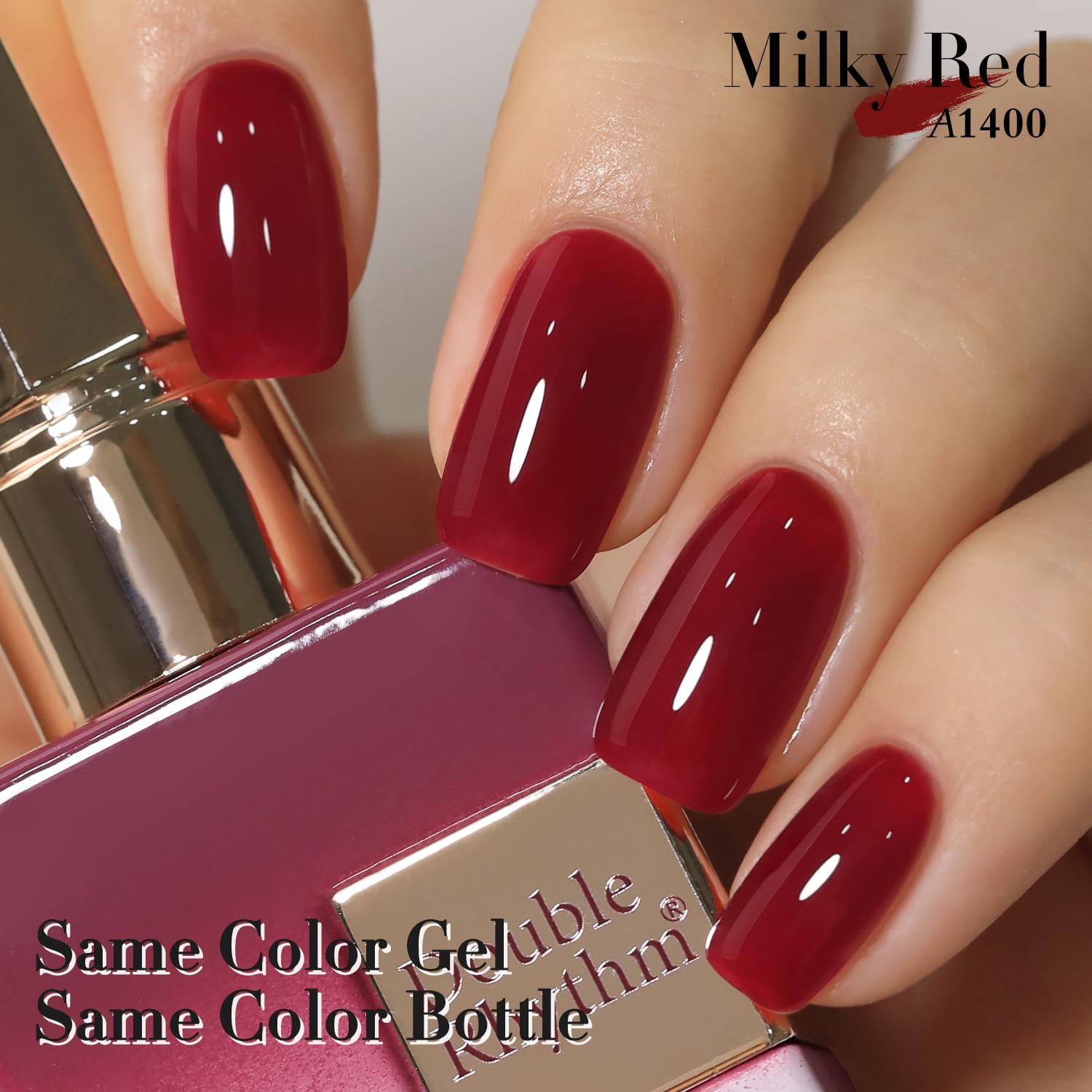 Double Rhythm Translucent Gel Polish Sheer Neutral Natural Light Milky Same Color Same Bottle 15ML Jelly Nail Polish Nail Art DIY at Home (Jelly Burgundy-A1400)