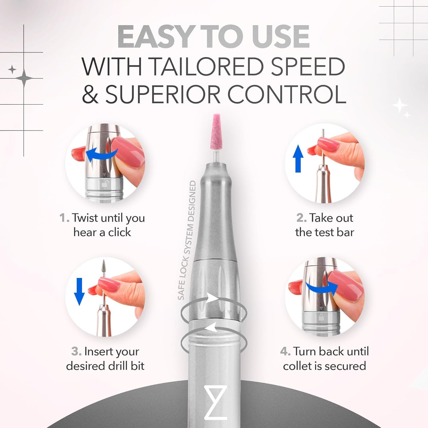 - Easy to use with Tailored Speed & Superior Control: Our nail drills come with adjustable speed gears, portable design, and long lasting battery. This portable nail drill is an essential tool for every respectable salon. Handle everything from gel polish removal to acrylic nail prep with ease.