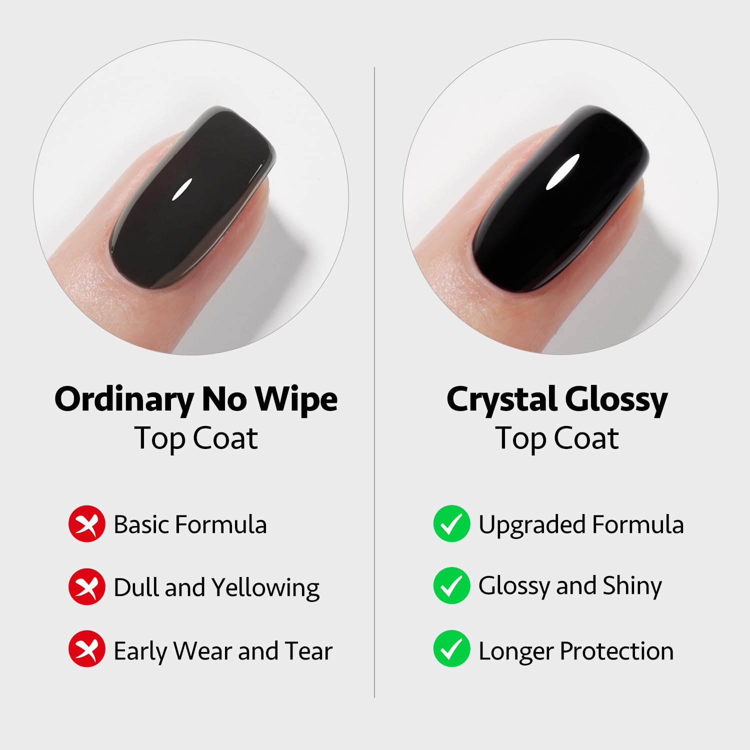 - Crystal Glossy: Thinner gel top coat, shinner effect!