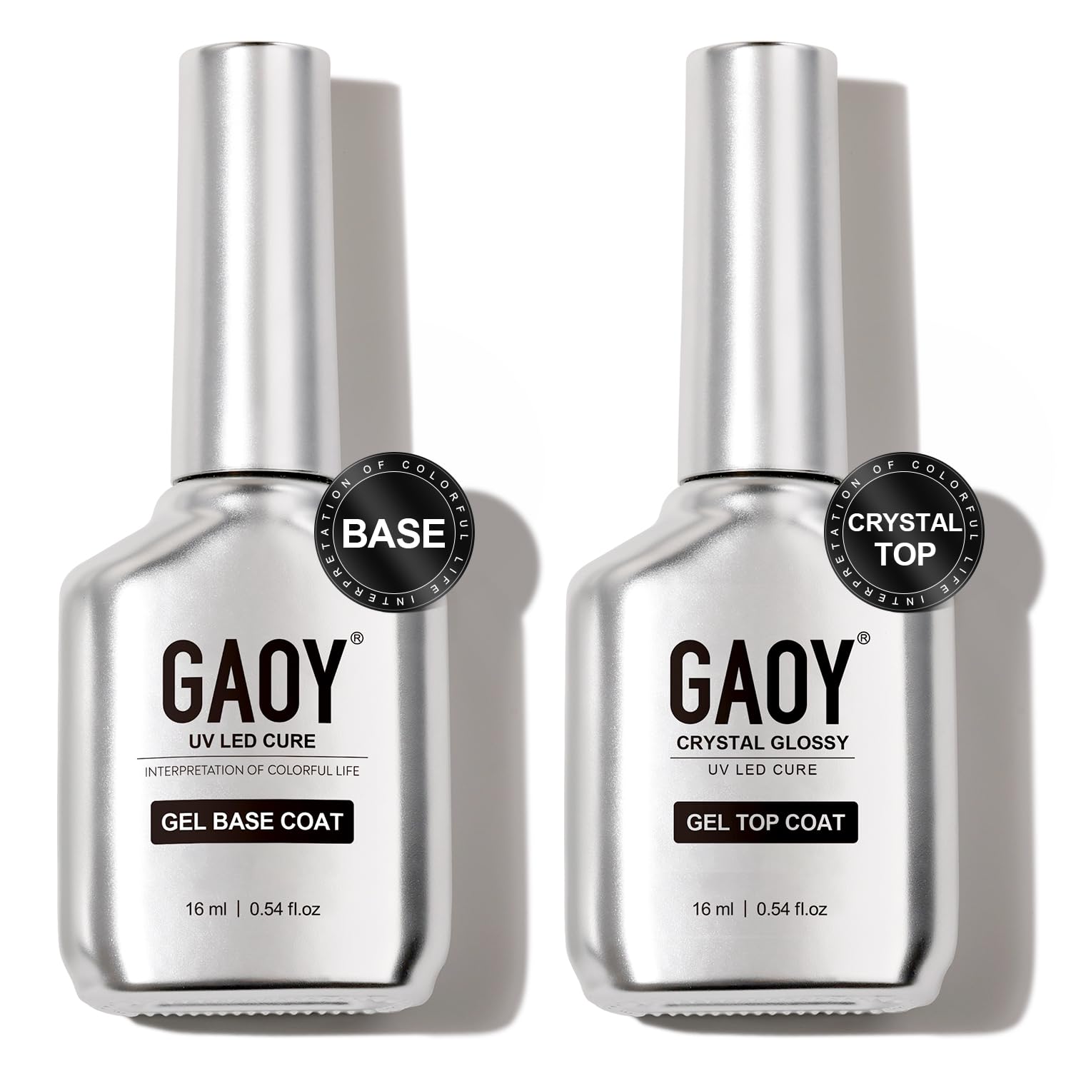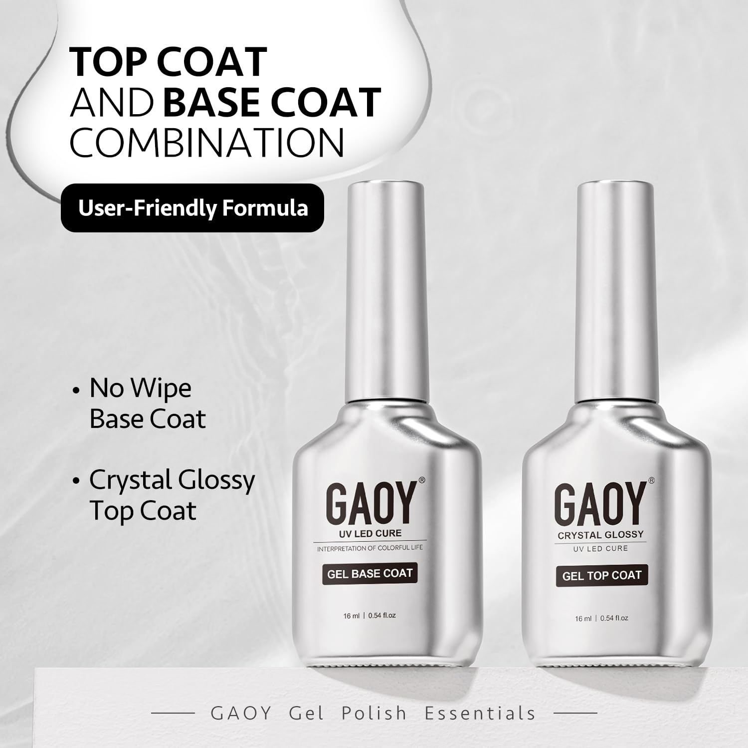 GAOY Crystal Glossy Gel Top and Base Coat Set, 16ml 2 Pcs High-Gloss Top Coat and No Wipe Foundation Combination for UV Light Gel Nail Polish
