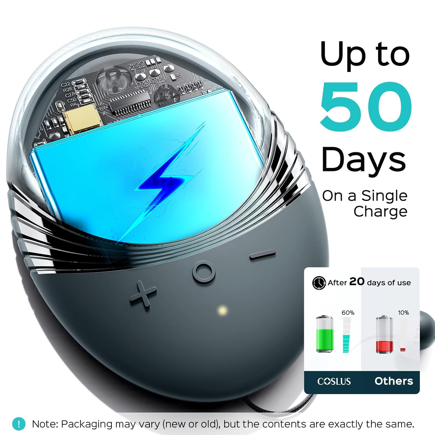 - 50 DAYS ULTRA-LONG BATTERY LIFE, USE ANYTIME ANYWHERE: The COSLUS portable silicone face scrubber uses a powerful battery, with a battery life twice that of other products on the market. With just 1.5 hours of charging, it can be used for 50 days. Its compact and lightweight design makes it perfect for use at home or on the go, and it comes with a USB cable (adapter not included) for charging. With a super long 50-day battery life, it is truly a portable solution for your convenience while traveling