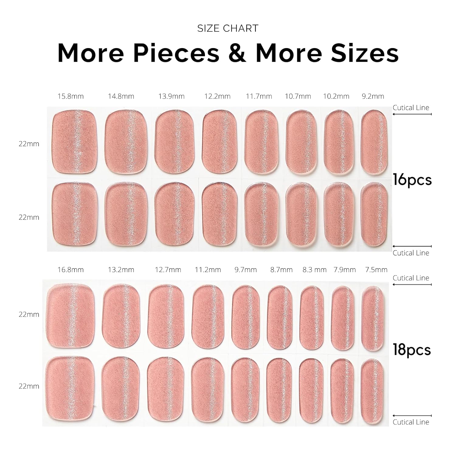 - 【34 PCS NAIL STRIPS】More Quantity & Sizes than Ever! - With 17 different sizes of our nail art stickers, you can easily find the right size to match your nails. - New curved side line fits even better with your nail shape for seamless adhesion.