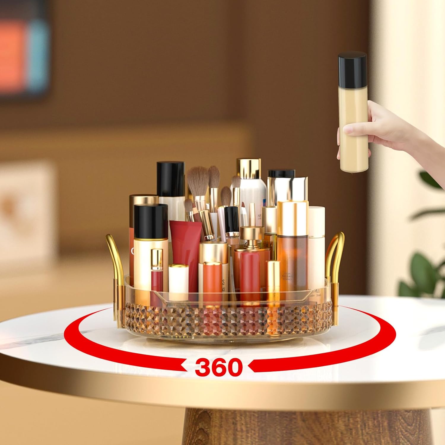 Awenia Rotating Makeup Organizer 360, Stackable Adjustable Large Capacity Cosmetic Storage Unit,Dresser Bathroom Kitchen Countertop Organizer with Metal Handle, Plus Size (Honorable Gold, 1 Tier)