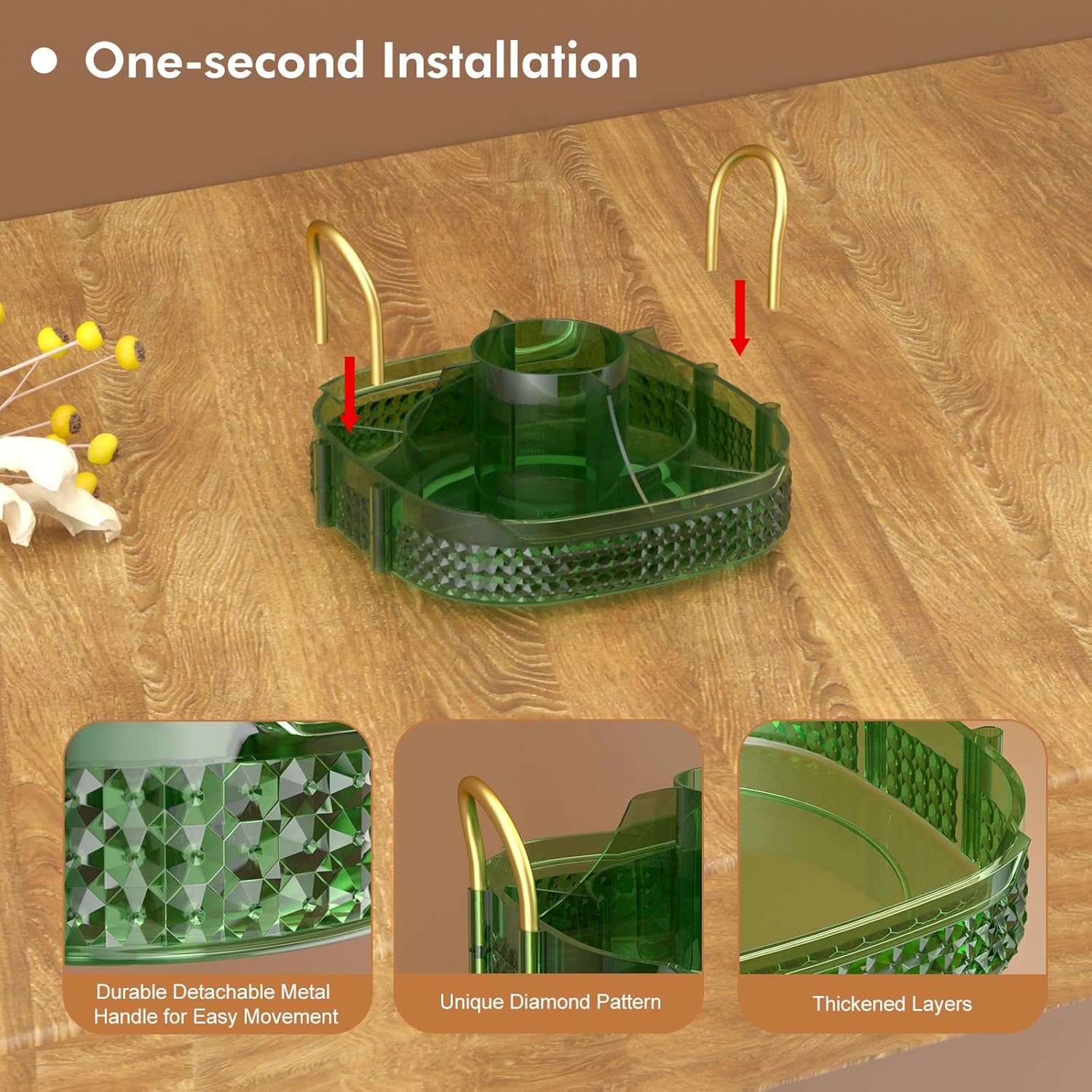 - 360 Degree Rotation& Easy to Install:➤Reinforced steady base rotates smoothly and silently, the rotating makeup organizer is easy access to all of your make-up in seconds.Less installation step are required other than inserting metal rack and handle,do not worry about repeated disassembly to shorten the lifetime of the makeup organizer.