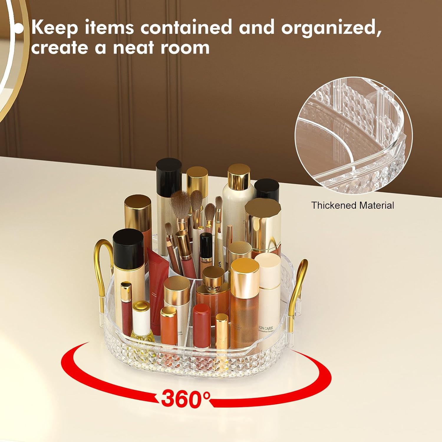 Awenia Rotating Makeup Organizer 360, Stackable Adjustable Large Capacity Cosmetic Storage Unit,Dresser Bathroom Kitchen Countertop Organizer with Metal Handle, Plus Size (Clear, 1 Tier)