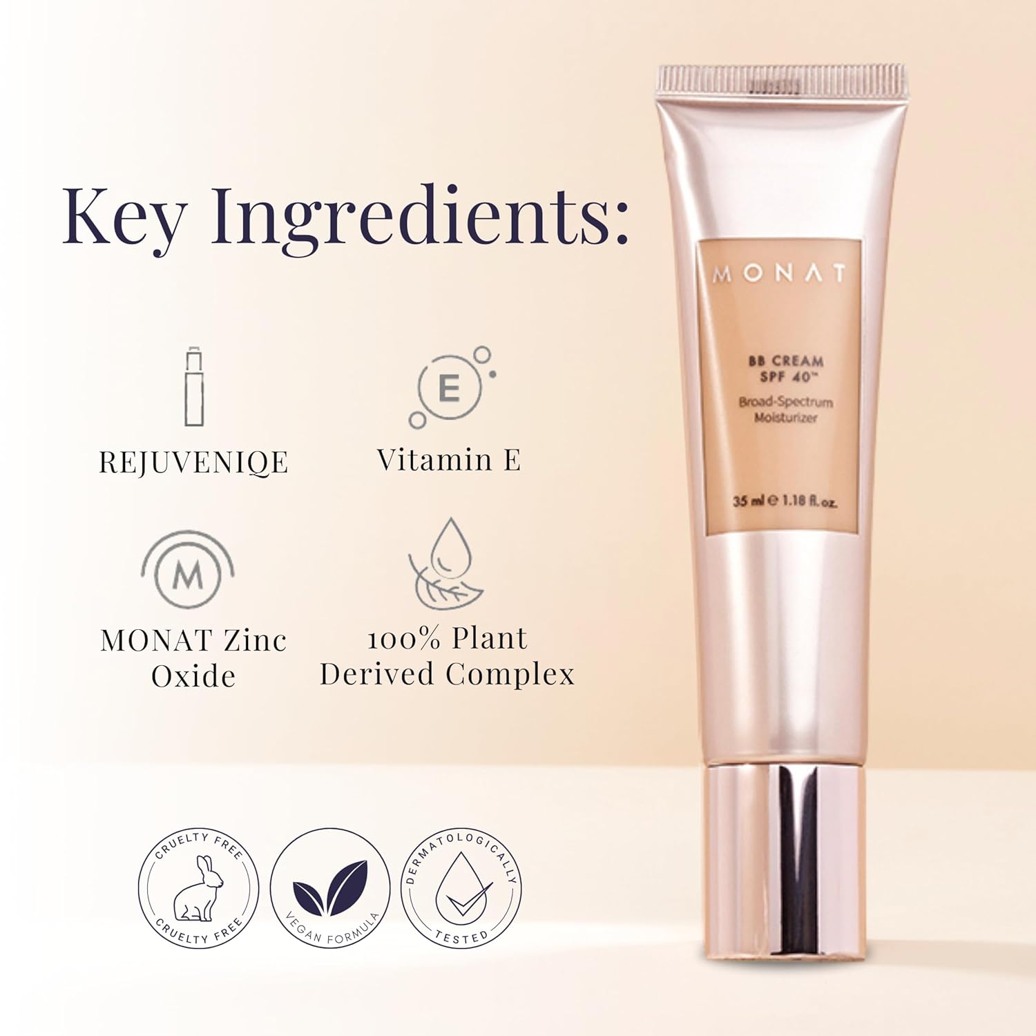 Monat BB Cream SPF 40 - Sand Broad-Spectrum Moisturizer, Lightweight Tinted Coverage, Fragrance-Free, 35ml/1.18 fl. oz.