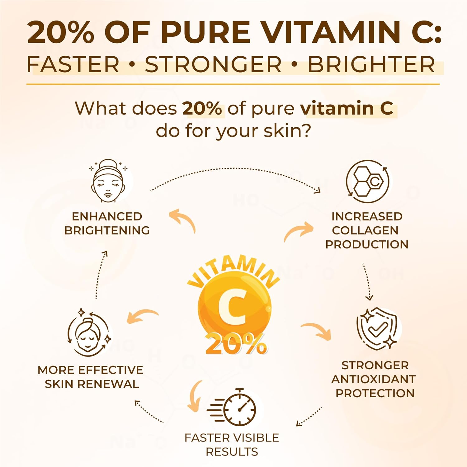 - BRIGHTEN & REVITALIZE DULL SKIN: A potent blend of Hyaluronic Acid, Ferulic Acid, and Green Tea Extract works with Vitamin C to brighten dull skin, restore radiance, and promote a youthful glow.