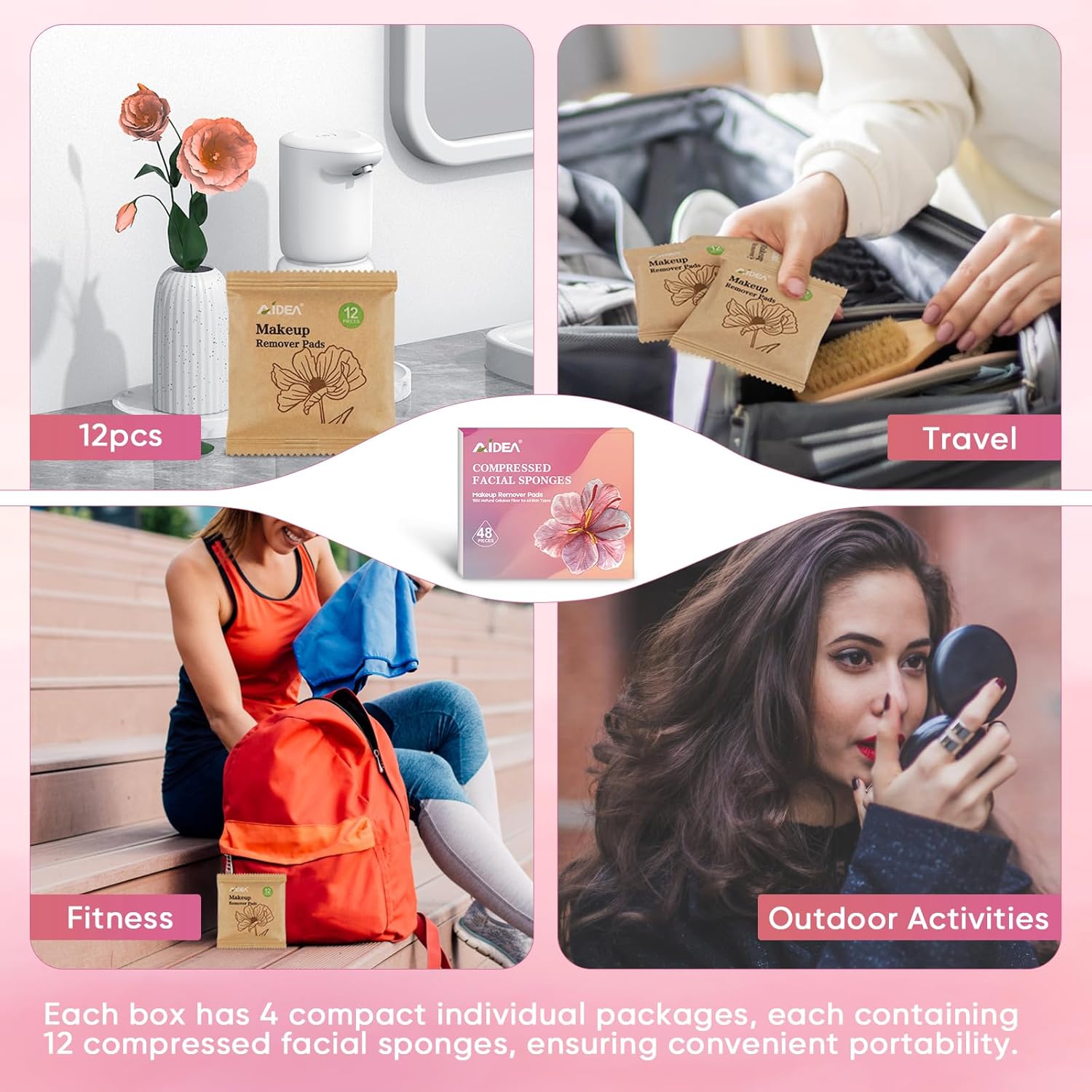 - Portable: Includes 48 count cellulose facial sponges; compact and lightweight design makes them easy to carry in a makeup bag, travel kit, or gym bag; convenient for maintaining your skincare and beauty routine on the go
