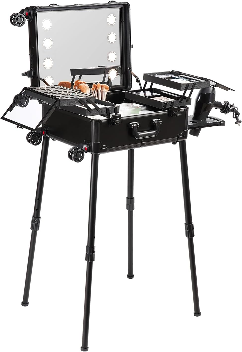 • Lightweight and Portable: The makeup case weighs only 24.9 pounds/11.3 kilograms and is equipped with an adjustable pull rod and 360° rotating large-size wheels, making it easy to carry. You can easily fit it in the trunk of your car or take it on a plane, making it your mobile makeup workstation.