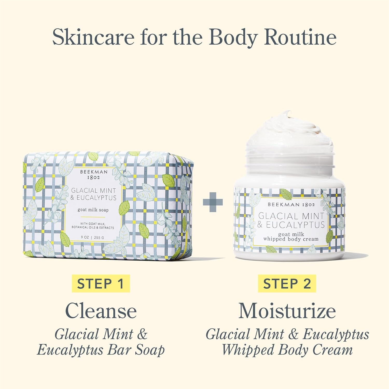 Beekman 1802 Glacial Mint & Eucalyptus Whipped Body Cream - 8 oz - Scented - Moisturizes, Soothes & Softens - With Coconut Oil & Mango Seed Butter - No Irritation - Good for Sensitive Skin