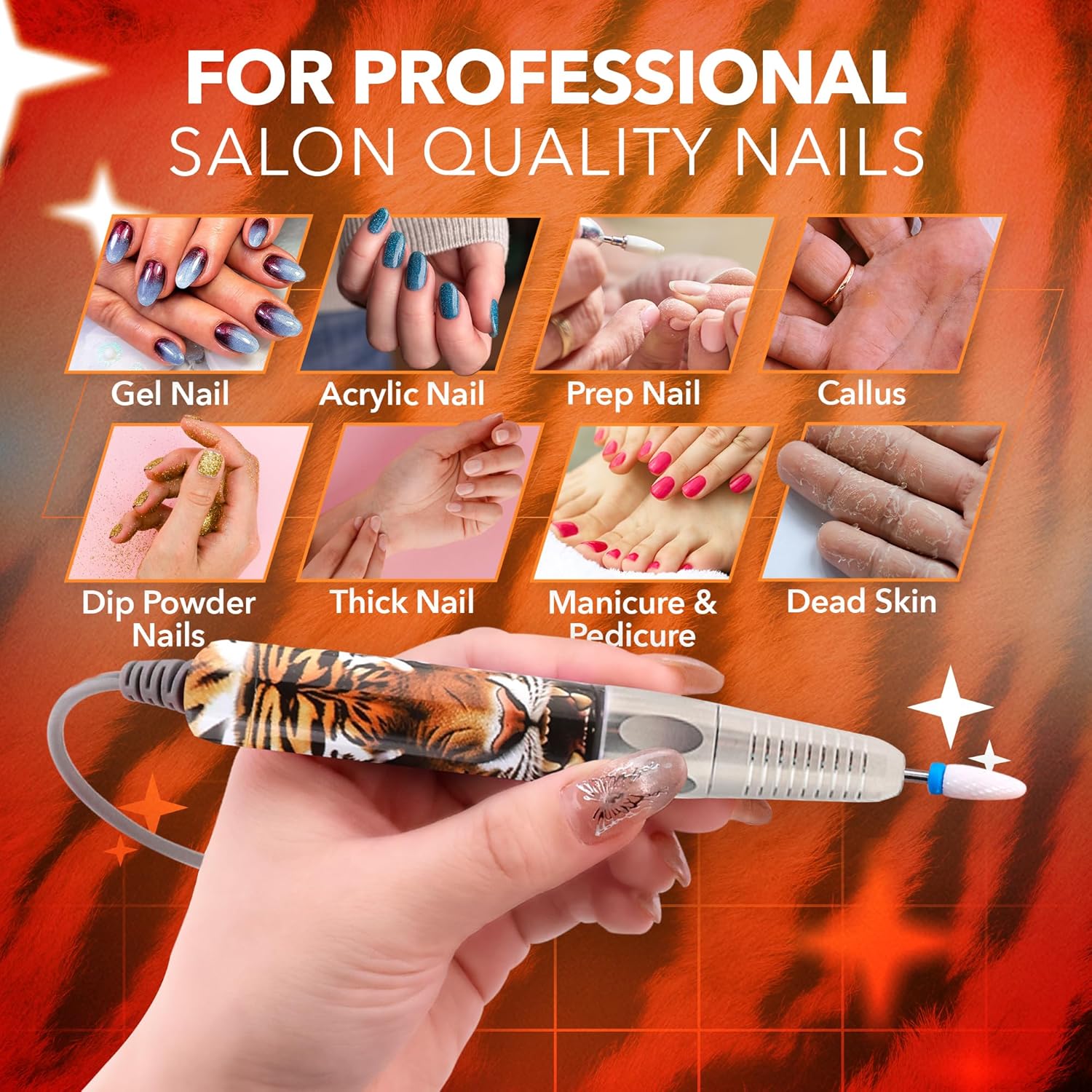 M Max - Nail Drill Professional - 2-in-1 Brushless Motor Nails Drill Machine - Electric, Cordless, Aluminium Alloy Casing, 35000 RPM, HD Display - Perfect for Salon & Home Use Special Edition - Tiger
