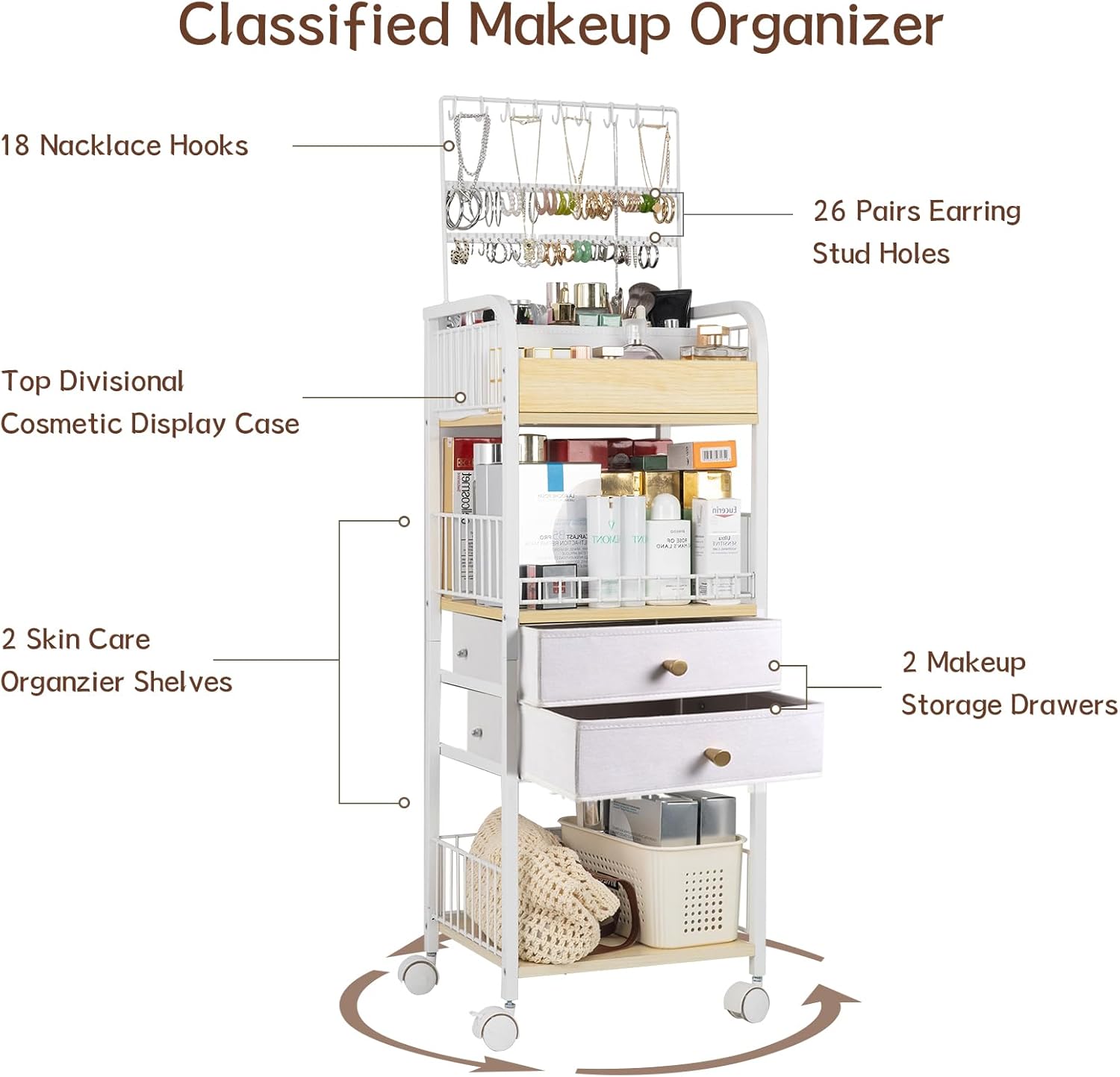 YGJT Makeup Organizer, Floor Skincare Cosmetics Organizer with Drawers, Jewelry Organizers and Storage for Earring Necklace, Vanity Organizer for Skin Care Perfume Makeup Brush Nail Polish Hair Tool