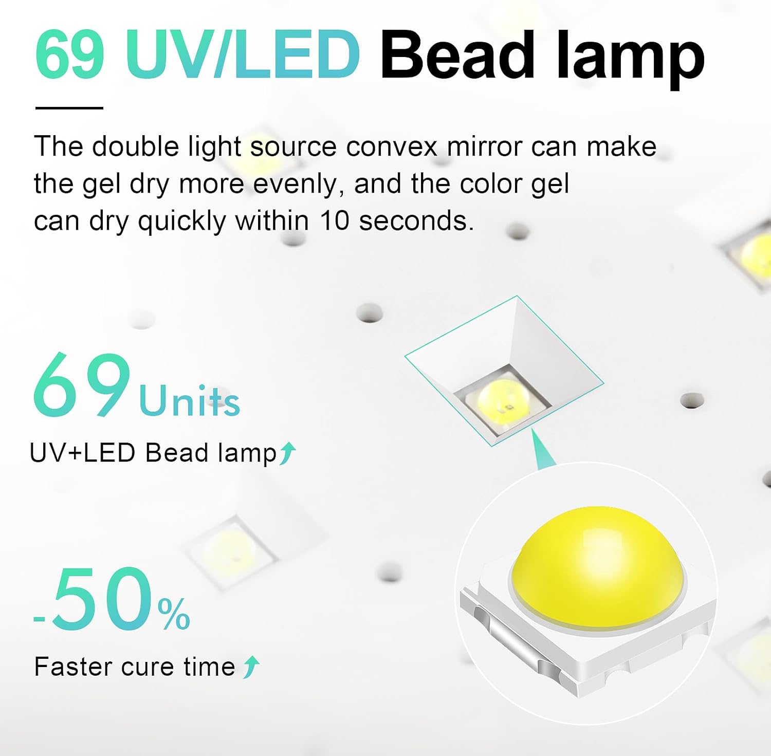 - 【Fast Drying】72W UV LED nail lamp, featuring 69 UV lights evenly arranged, ensures fast and thorough curing for the ultimate nail-drying experience.