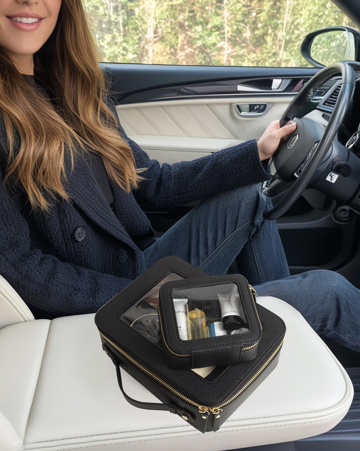 - Car Must Have Essential: The car organizer is roomy to store your makeup, makeup brushes, lipstick, cosmetics, foundation, skin care, cables, chargersor and other items. It can be a good car accessory fits in the center console or other parts of your car