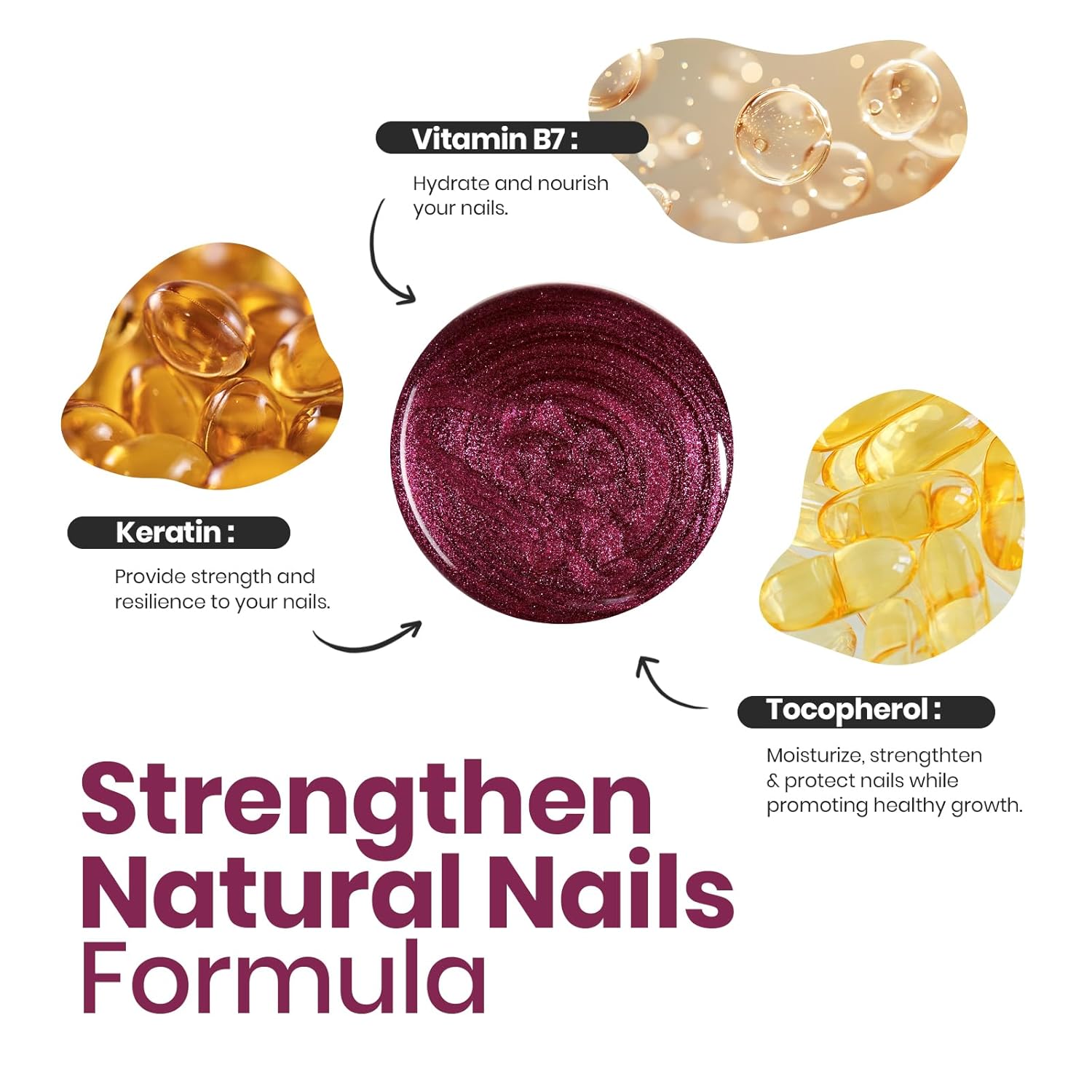 - Nail Care Ingredients: This red nail polish contains the ingredient which can enhance and protect the surface of nails. Help your nails quickly return to a healthy state. Suitable for personal nail lovers, professional nail artists.